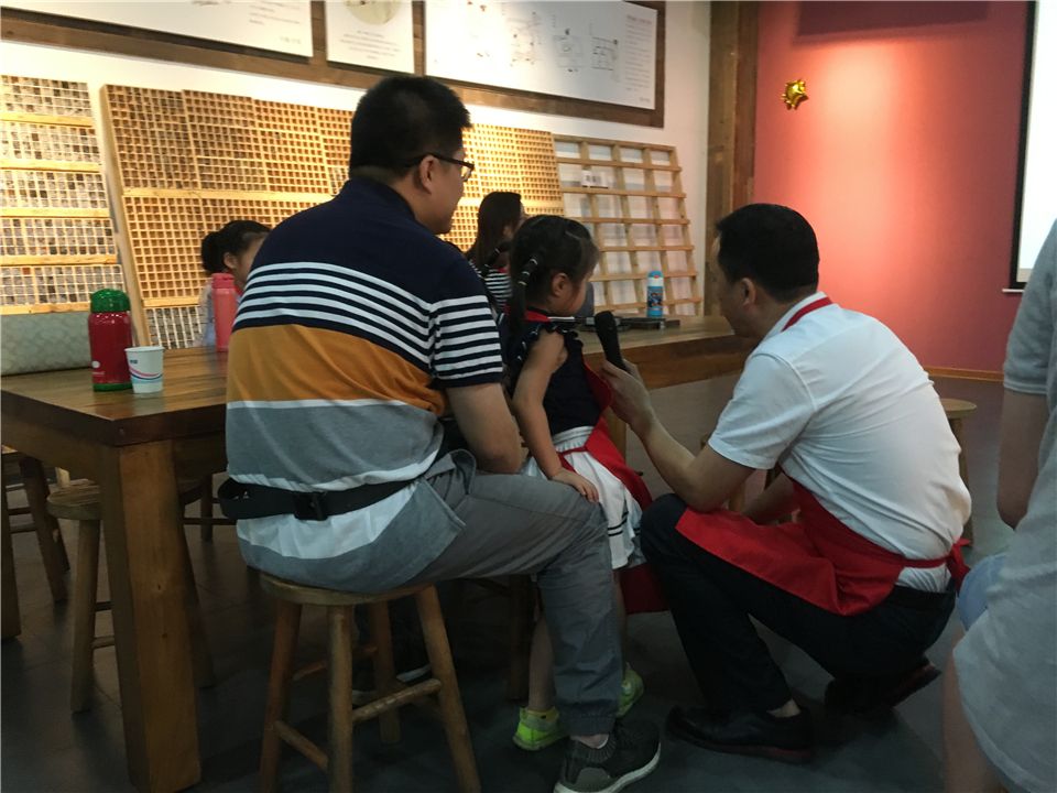 活动开始,“字善纸美”的老师详细地向家长和萌娃们介绍了关于印刷术中活字印刷的起源、发展与制作方法,萌娃们还认识了仓颉、蔡伦、毕昇三位老祖先对活动印刷做出的贡献!看,萌娃们和爸爸妈妈们听得多么认真呀,大伙儿还积极地举手回答老师的问题,想要知道更多的关于活字印刷的知识。