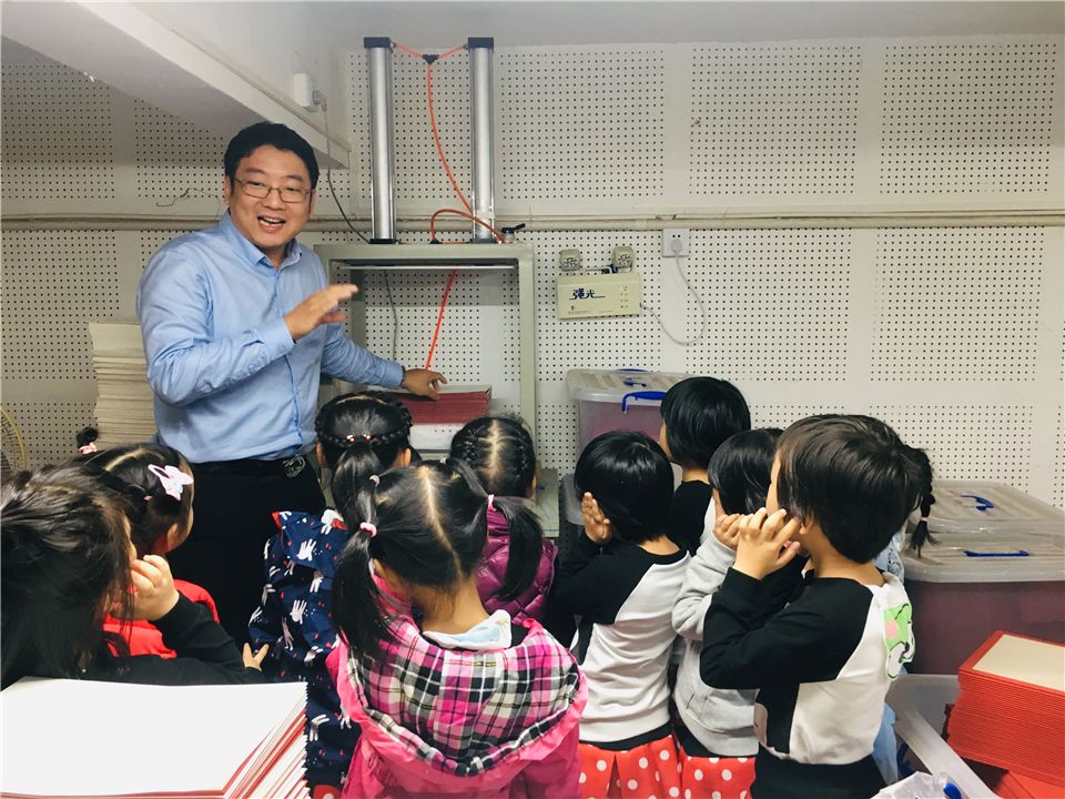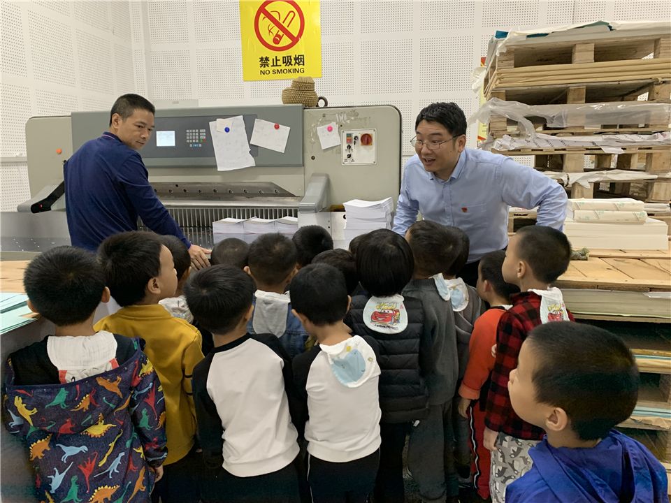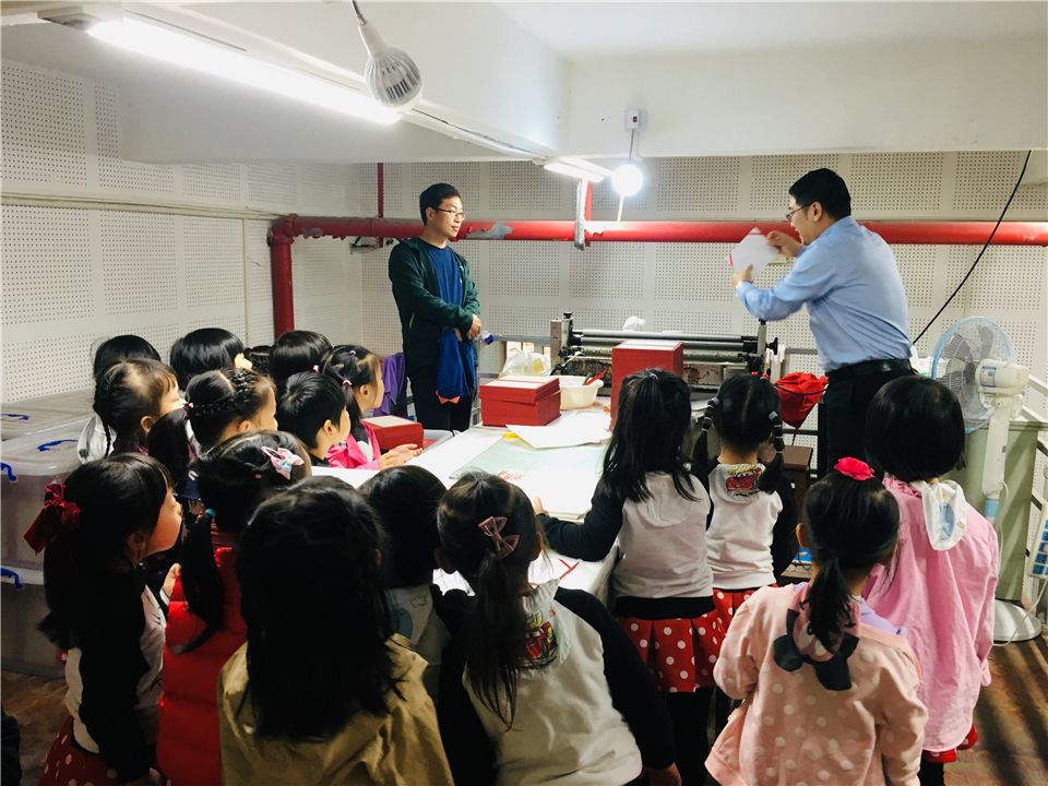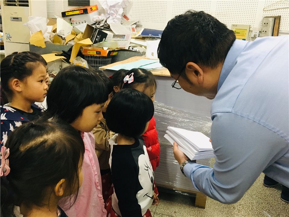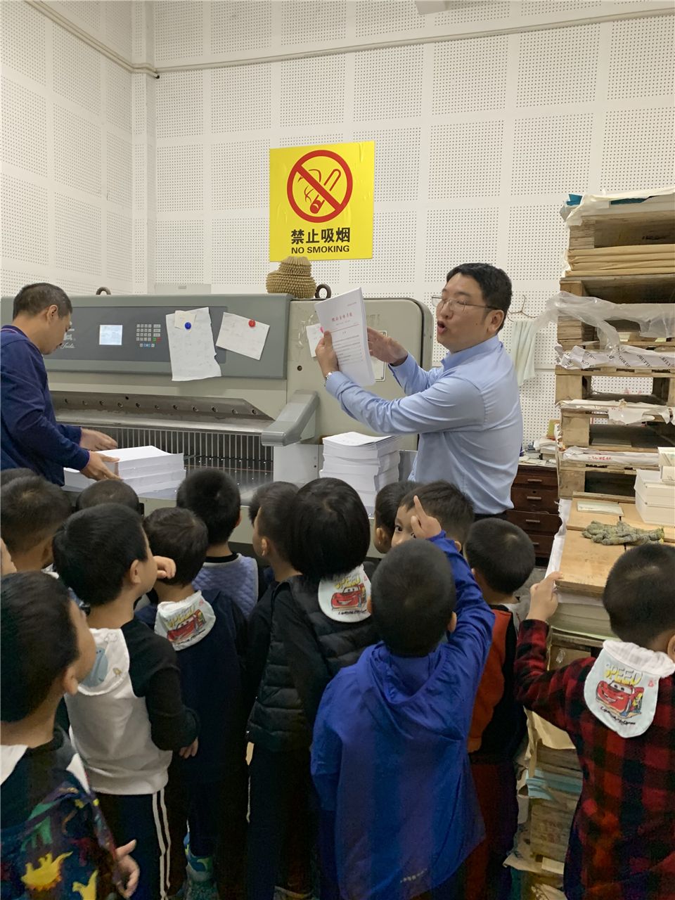 印刷厂门口的周叔叔热情的迎接了我们。大伙儿认真地听着周叔叔介绍整个活动流程……之后,我们便开始行动啦!请跟着镜头一块儿去瞧瞧吧。