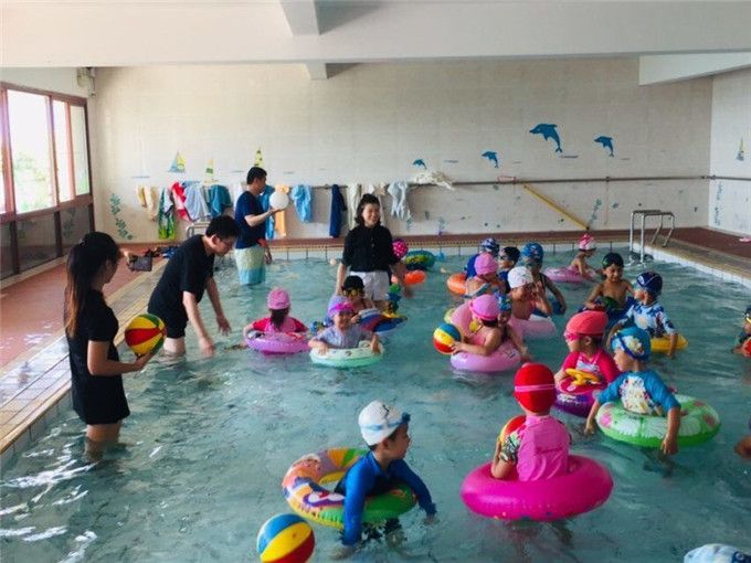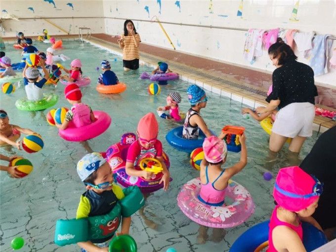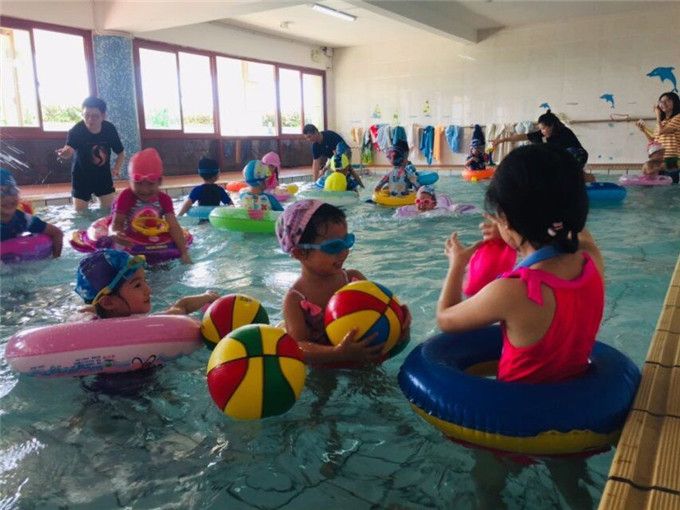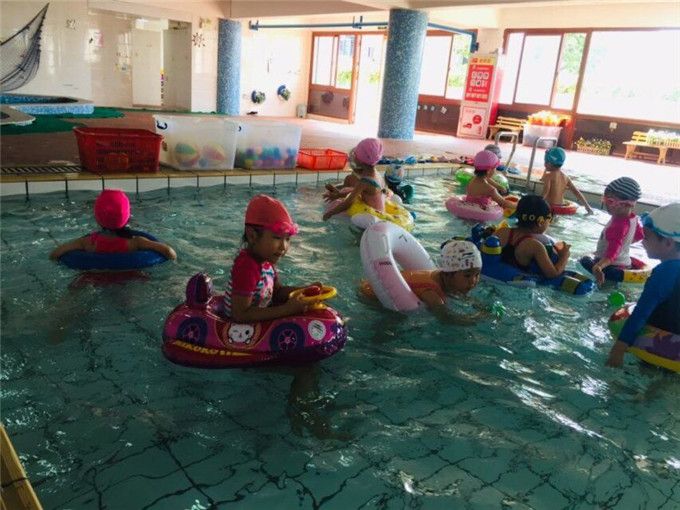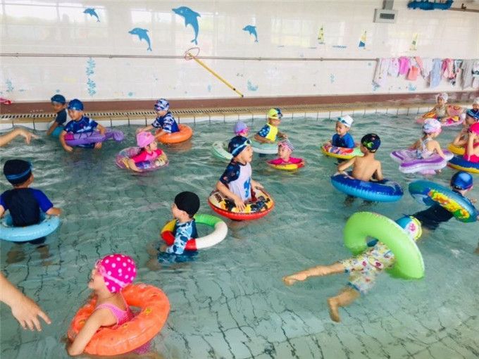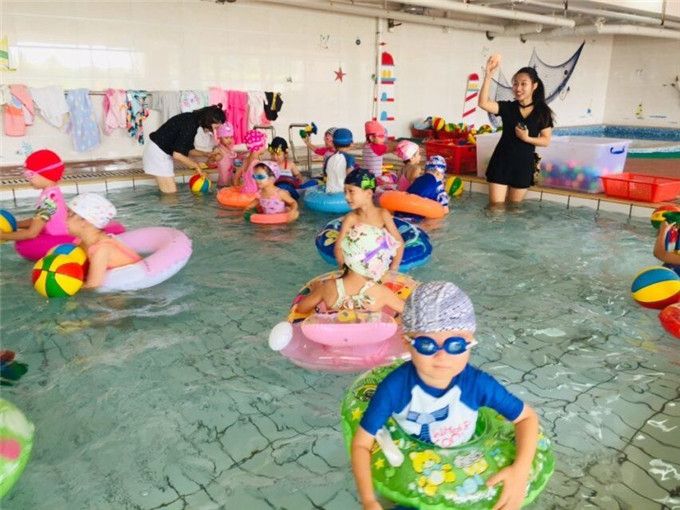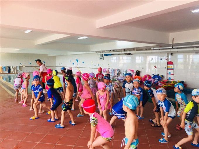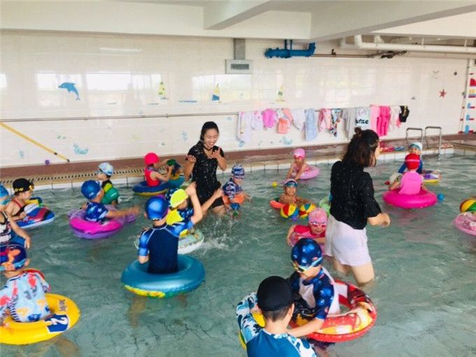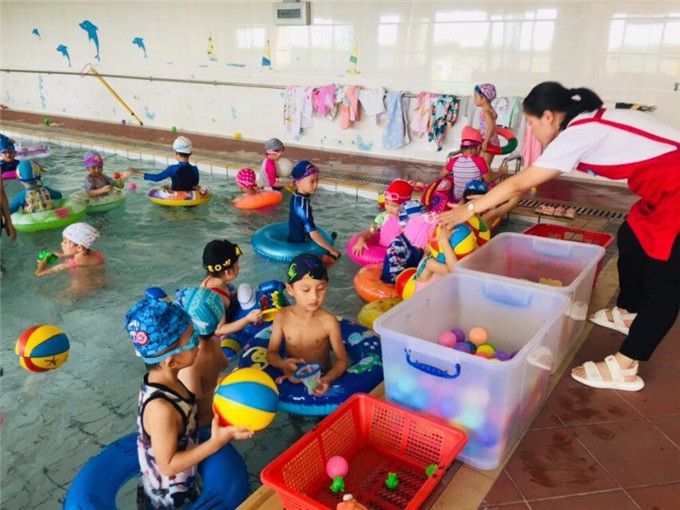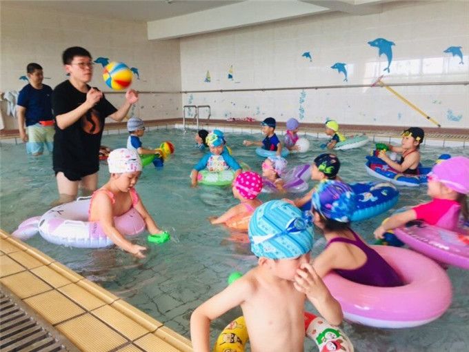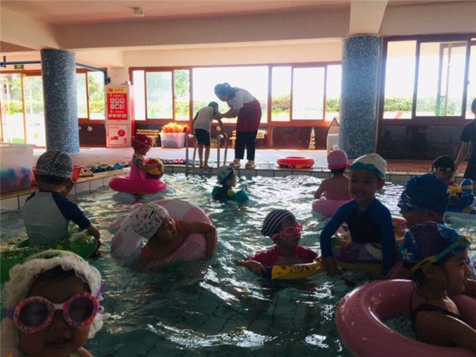 小朋友们一个个像小泥鳅似的,在水里追来逐去,又喊又叫,玩耍嬉戏,真有说不出的惬意。他们像鱼儿似的,在恒温的泳池水里快乐地游着玩着,享受着池水的爱抚。