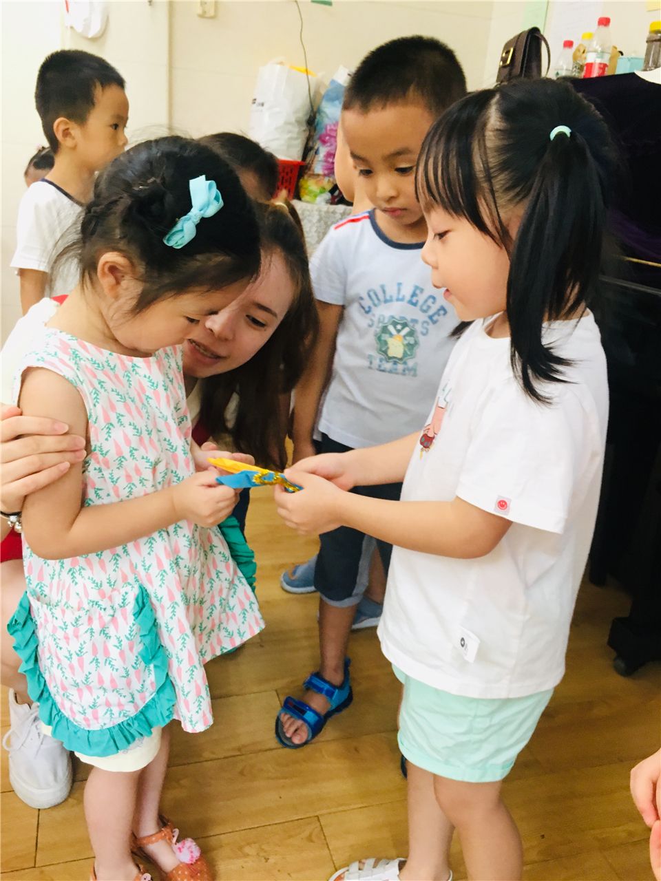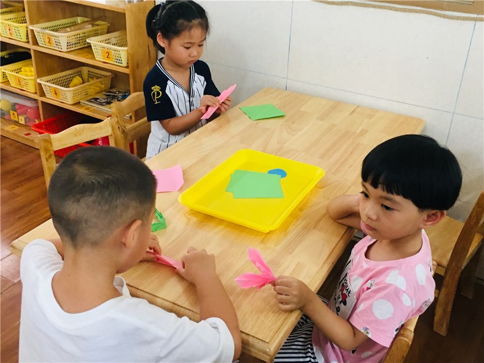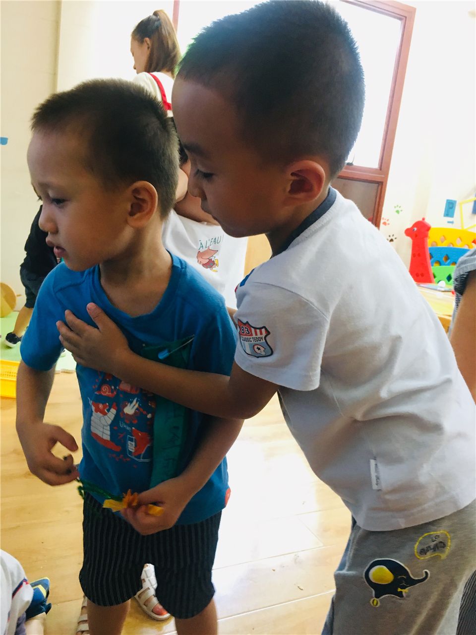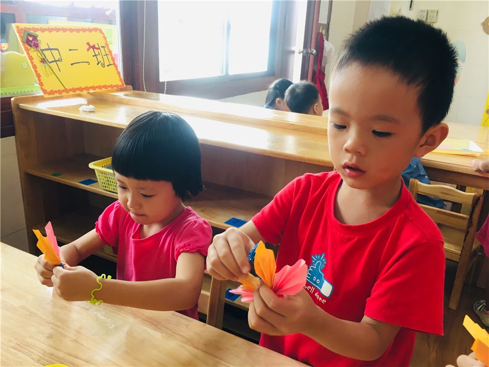 瞧,我们认真地做起了小礼物,准备送给弟弟妹妹呢。一会儿,纸蝴蝶就做好了,快去送给弟弟妹妹吧。我们还为弟弟妹妹表演了手指操,呵呵……已经成了弟弟妹妹的好榜样了!我们由衷地希望弟弟妹妹能快快地适应幼儿园的生活,因为幼儿园里有许许多多美好的事情在等着他们呢。