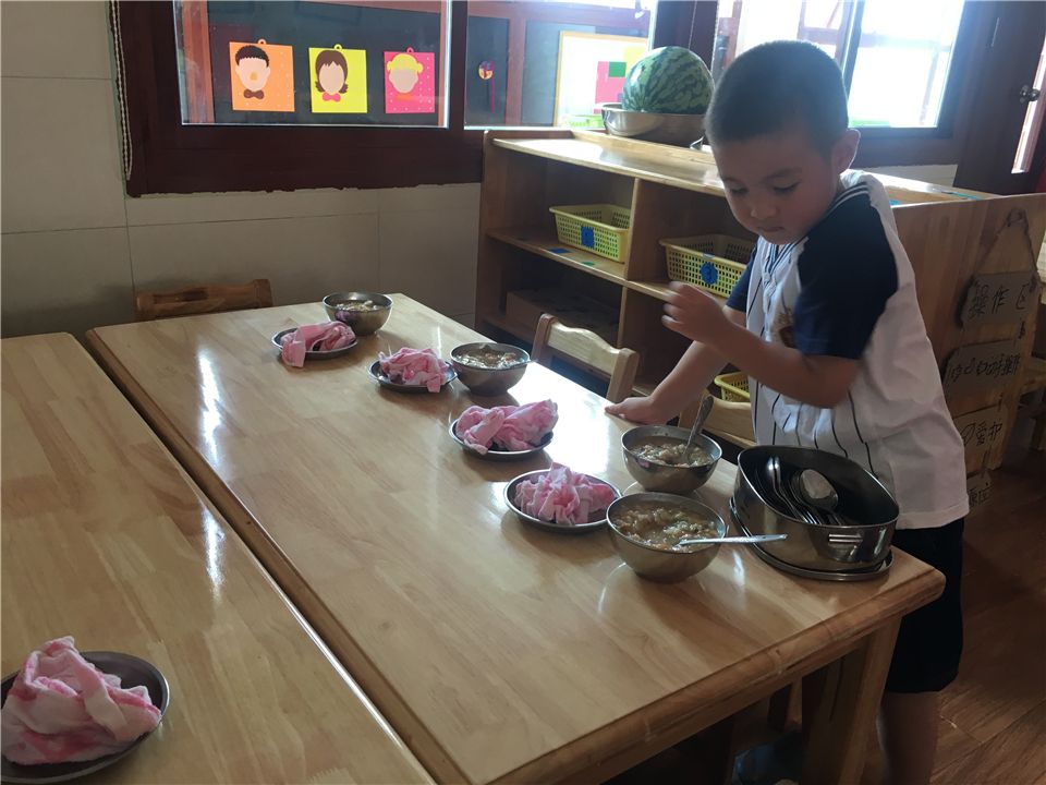 升入中班的我们变得更能干啦!力气变得大大的,能量也变得足足的,自己的事情自己做,争做弟弟妹妹的榜样。我们能认真地参加幼儿园里各种有趣的活动,还能自己叠衣服、叠被子。不仅这样,我们还能帮助老师做各种力所能及的事情。瞧,我们当上了小小值日生,协助老师洗盘子、分盘子、毛巾、汤勺,搬椅子呢!亲爱的爸爸妈妈我们能干不?点个赞呗!