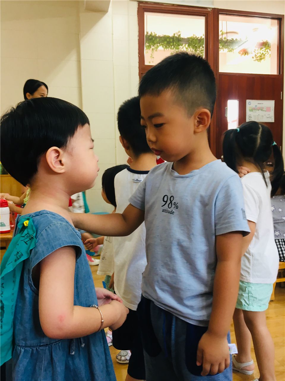 “小鸟喳喳叫,太阳咪咪笑,小朋友都高兴,我们长大了……”九月,是成长的季节,在这个美好的季节里,我们升班啦!还记得宝贝们刚上小班时要找爸爸妈妈哭成小泪人的模样。一转眼,眼前这群天真可爱、自信快乐的小可爱们已经由稚嫩懵懂的小二班小朋友成长为中二班的小哥哥、小姐姐了哦!让我们大声的说:谢谢园长妈妈为我们授予的新班牌,好开心耶!
