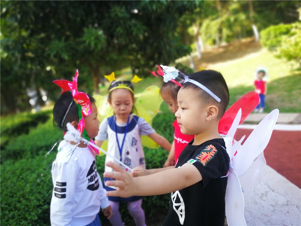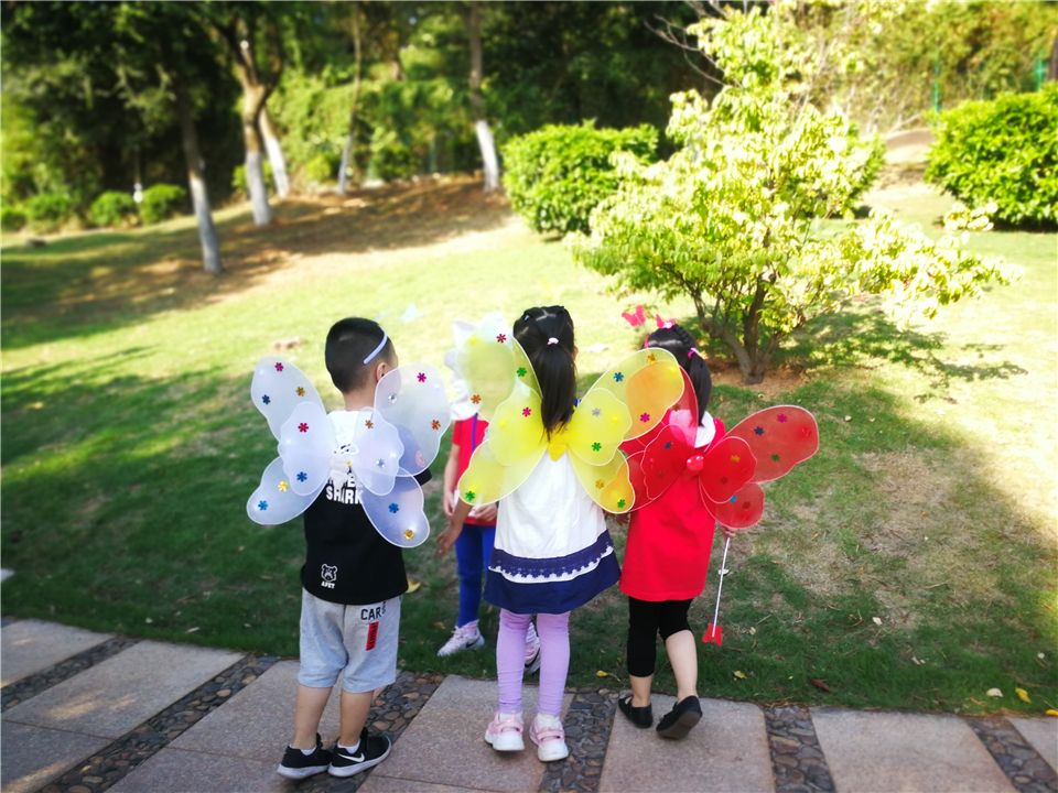 “等会儿我要当红蝴蝶,因为我喜欢红色。”“我要当黄花姐姐,我只让黄蝴蝶到我的叶子下面避避雨,......”孩子们手牵着手,你一言我一语,高高兴兴来到了幼儿园的小山坡上。