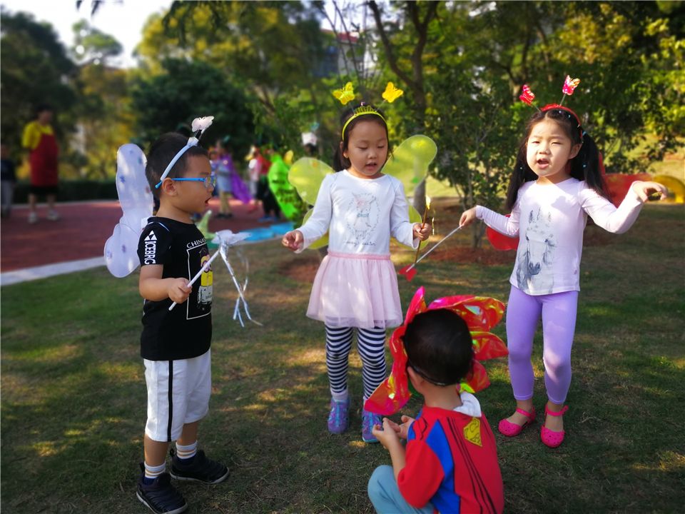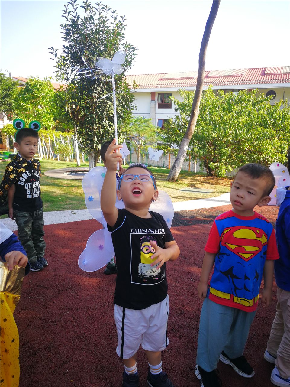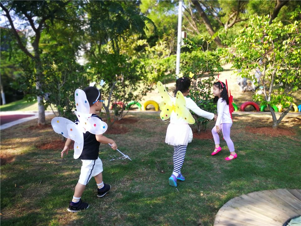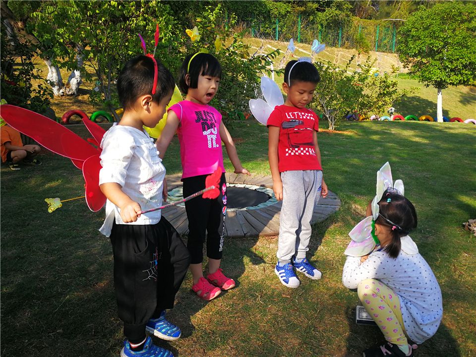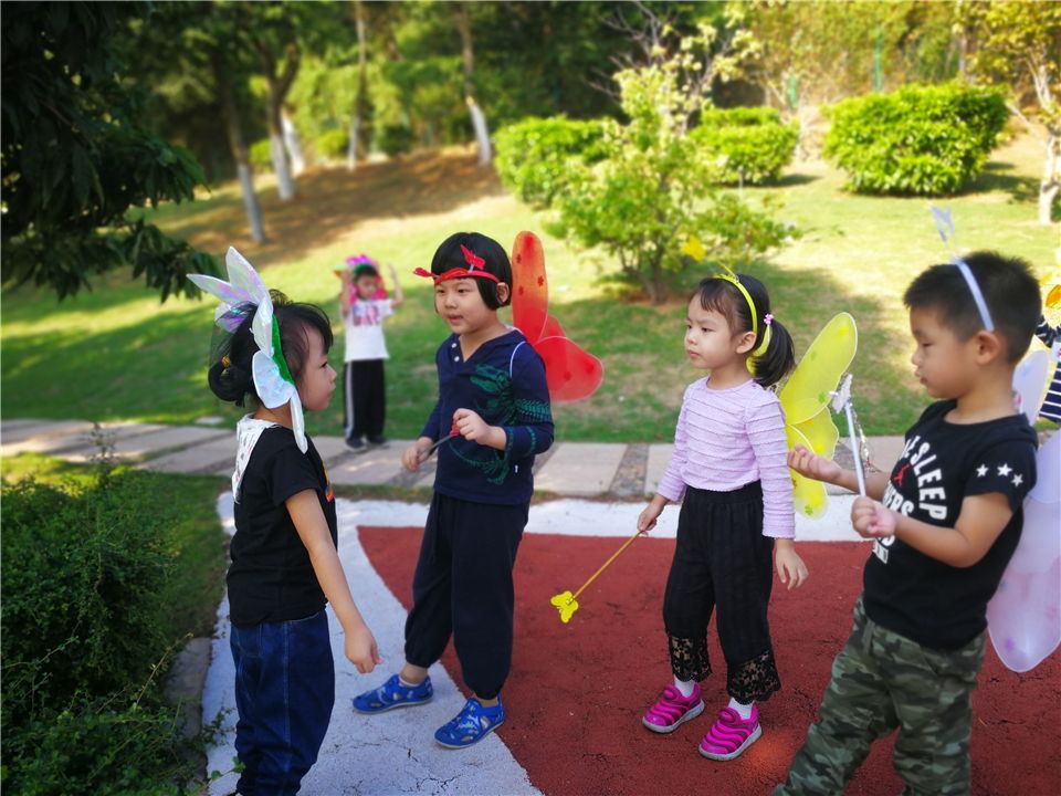 蓝蓝的天空下,绿绿的草地上,有三只蝴蝶在花丛里游戏,他们飞到了白花姐姐那里,对着白花姐姐说:“白花姐姐,白花姐姐,大雨把我们的翅膀淋湿了,我们被雨水淋得直发冷,能到你的叶子下面避避雨吗?”他们都是谁呢?原来,中一班的润美,家萱,阿钊还有紫衫这几位小朋友扮演着各自喜欢的角色,把故事里的画面在幼儿园美丽的小山坡上淋漓尽致地展现了出来。在阳光明媚的秋日里,孩子们的身影显得格外的灵动而富有生机!