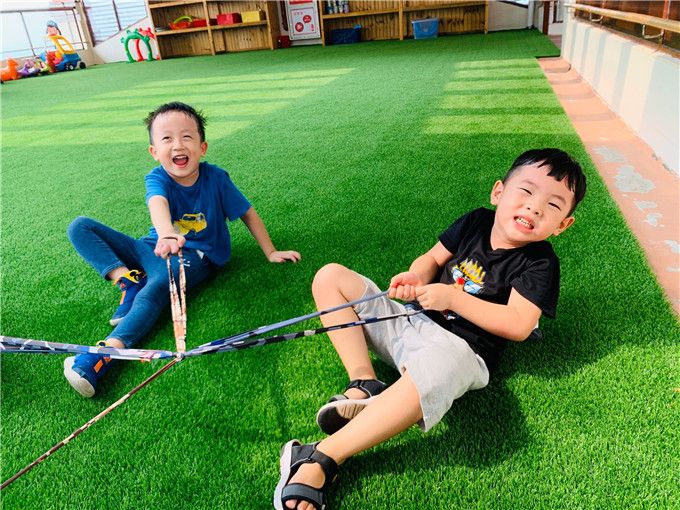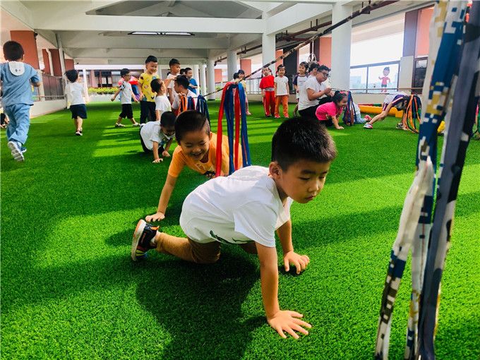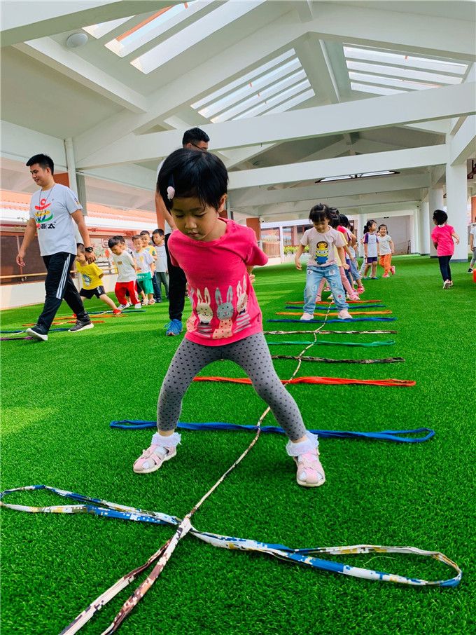 接下来,让我们看看宝贝们化身小勇士,如何玩转彩色绳索!
