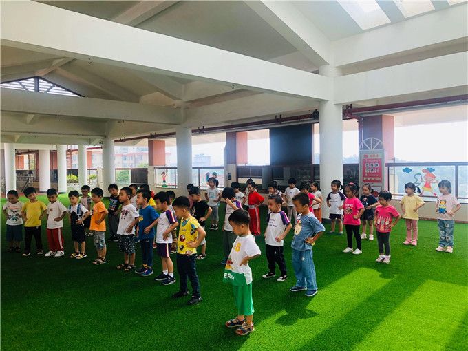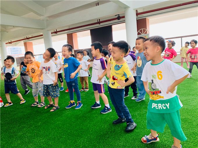 咦?是哪儿传出来的欢乐笑声呀!走近一看,是小虎哥哥正在给我们中六班的宝贝们开展体智能课程呢!