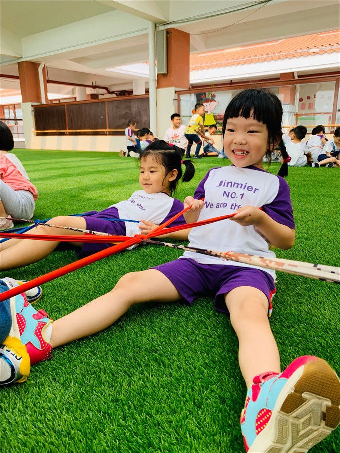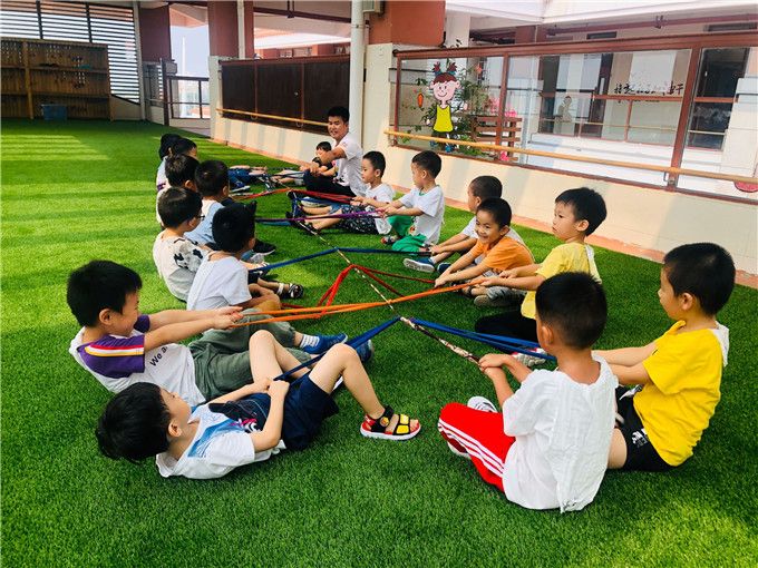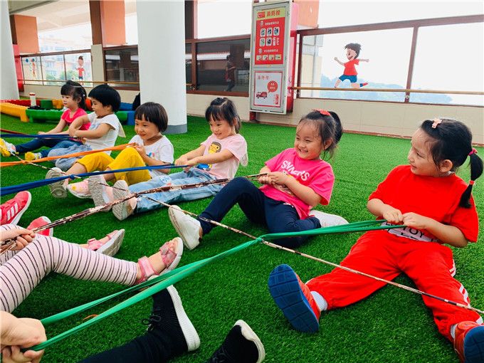 “准备好了吗?等下看看谁力气最大噢!开始!”随着激情的音乐,小勇士们开始了激烈的拉锯战!