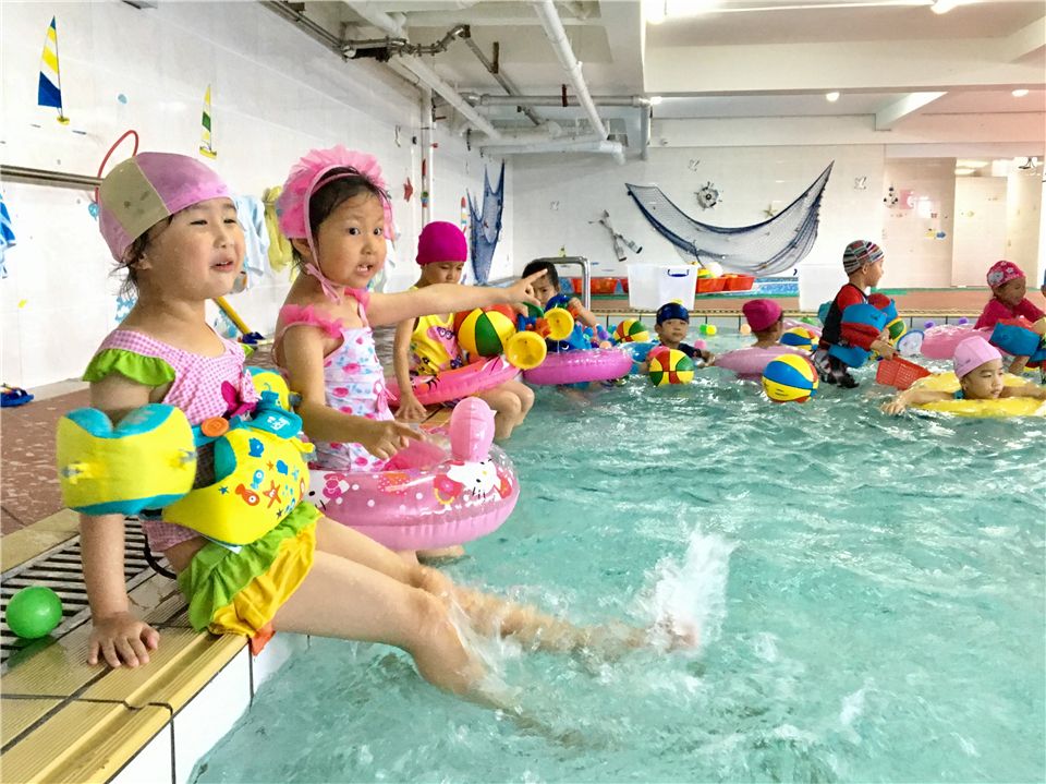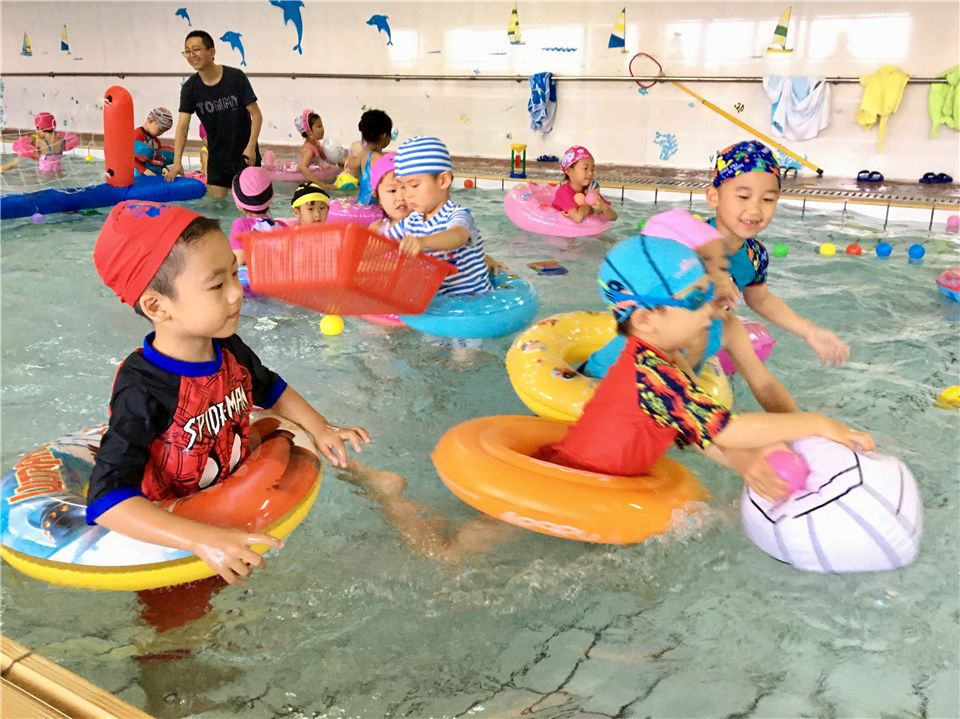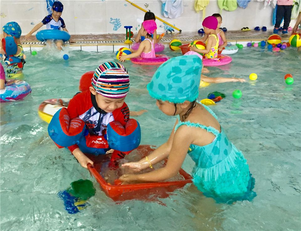 玩水是每个孩子的天性,是一项有益身心的全身性运动。而幼儿园的戏水馆,是孩子们最为喜欢的天地啦。一大早,小朋友便带着他们的“装备”,一路又蹦又跳,和小伙伴们有说有笑地来上学……在这里,孩子们嬉笑玩闹、泼水、踢水、水中寻宝、打场水上排球……丰富多彩的水中游戏,总是让孩子们意犹未尽,流连忘返。