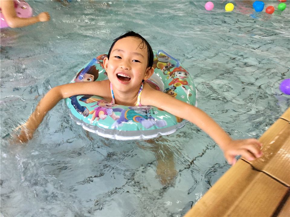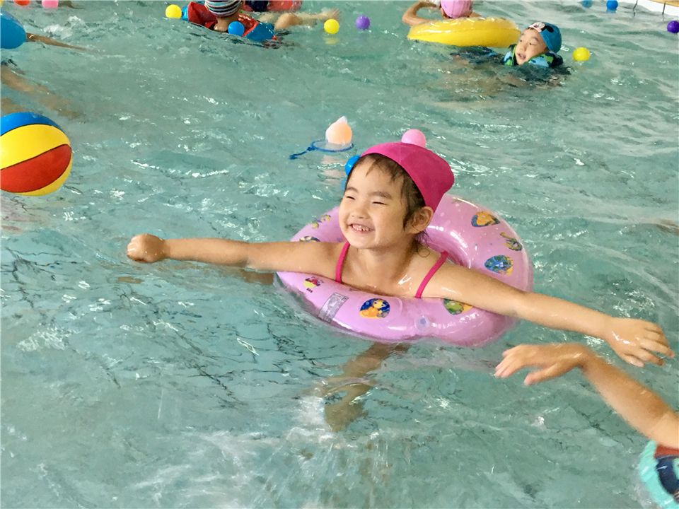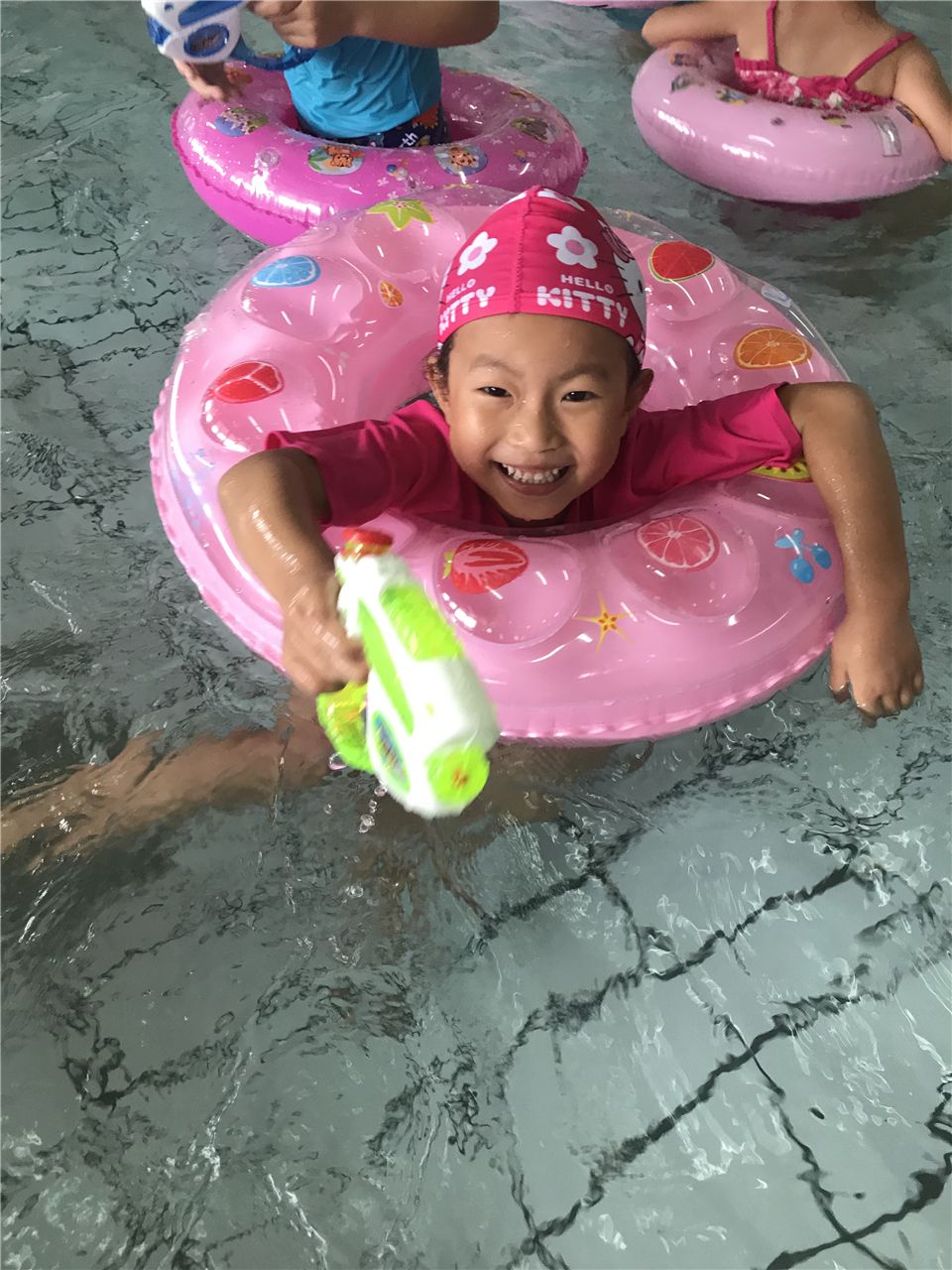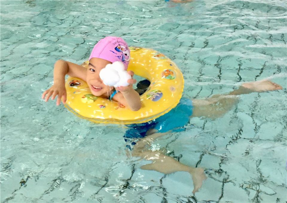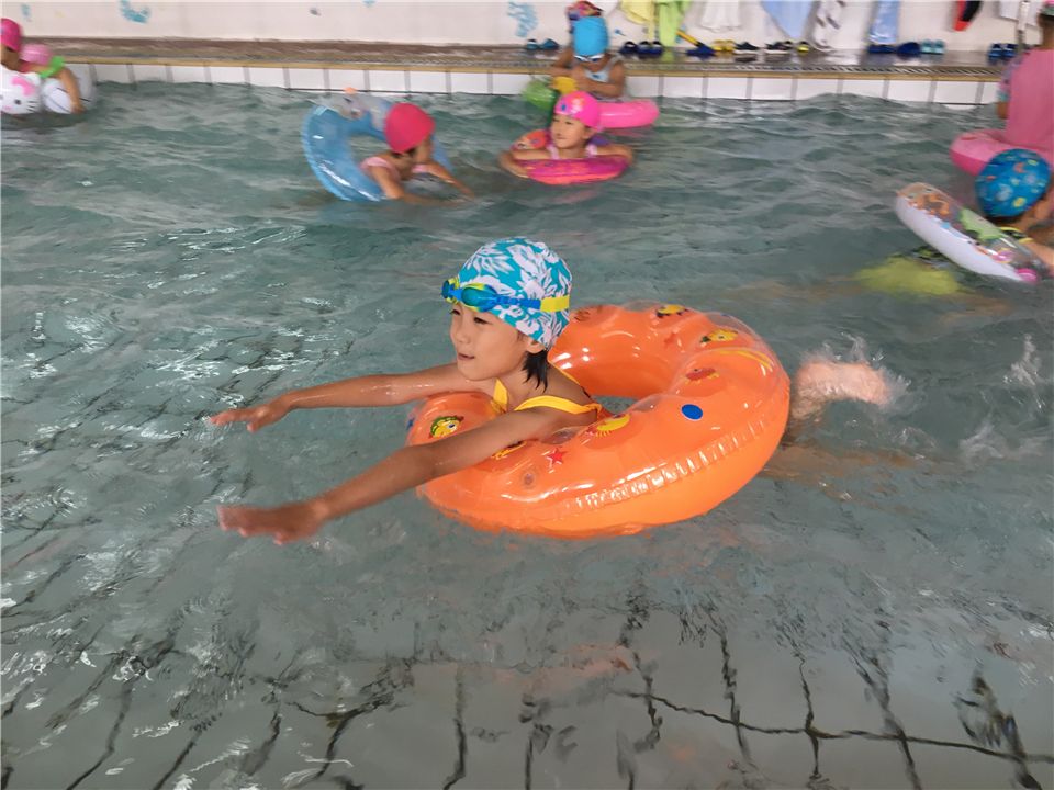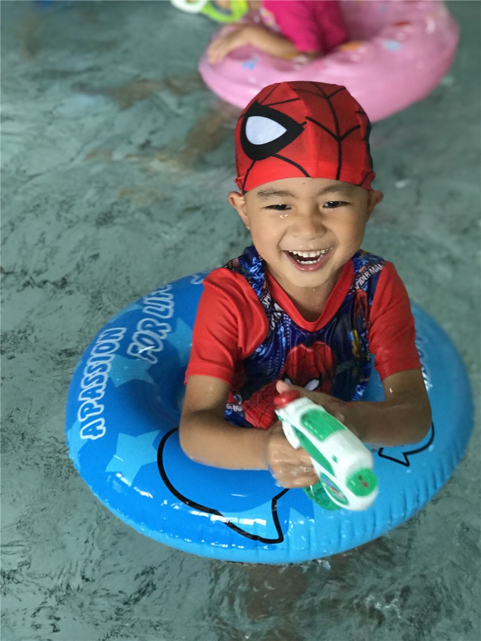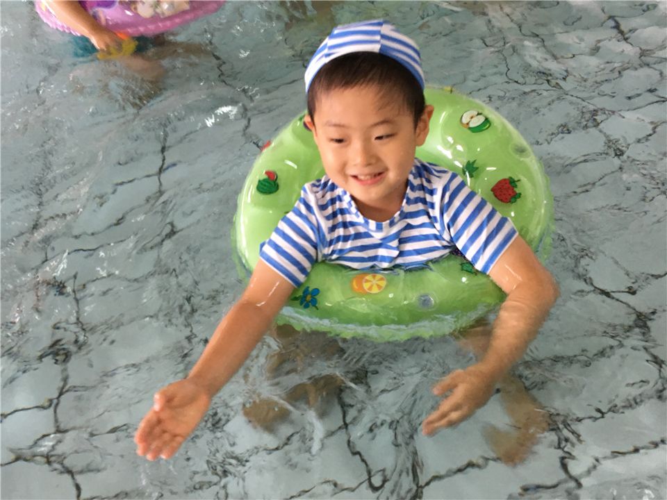 瞧,萌娃们在泳池里快乐地畅游,嬉戏,寻觅清凉,一派乐意融融的景象。瞬间,游泳池就漾起一张张花一样的笑脸,真可爱!