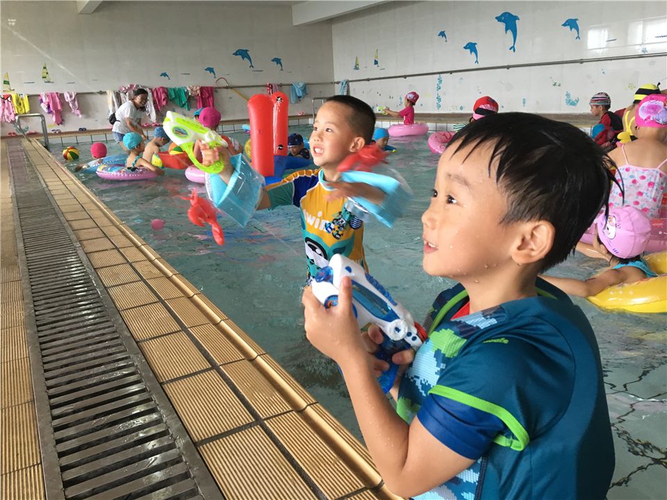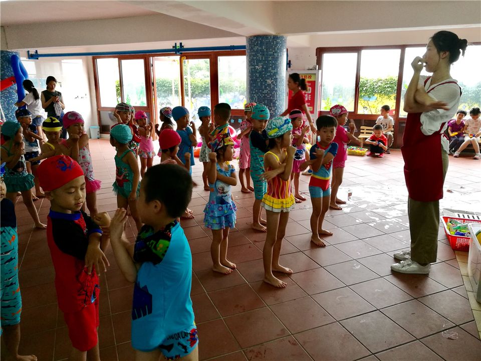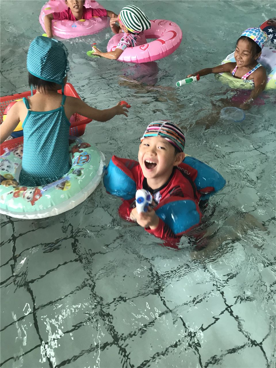 泳池里的水也配合这小朋友的欢声笑语涌起一阵阵波澜。在这欢乐的氛围下,几位“战士”正兢兢业业地守卫着我们的小朋友,确保他们能够安全的在水里自由自在的玩耍。他们就是我们的志愿者爸妈。瞧!他们犹如上了发条般,时刻注意着孩子们的动向和安全。在这里我们要代表所有孩子们向你们说一声:“谢谢你们,你们辛苦了。”