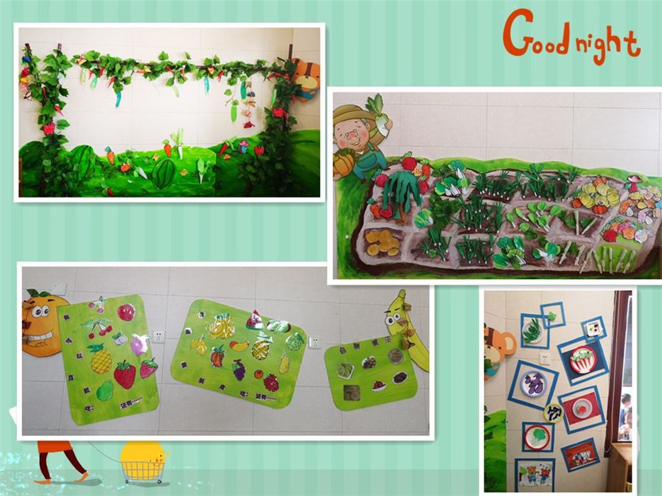 大功告成,完成的作品当然是用来布置我们的班级“快乐农场”了,我们这双巧巧手还可以设计出更多千姿百态的蔬菜新衣!