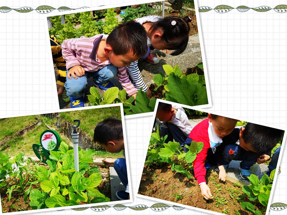 要和蔬菜宝宝交朋友最直接的办法就是用心照顾我们班菜地的蔬菜了。从播种、浇水、铲土、除草,再到最后的收获.虽然付出了许多辛勤的汗水和努力,但蔬菜宝宝的茁壮成长是我们最值得骄傲的地方,这一张张照片见证了我们和蔬菜宝宝深深的友谊。