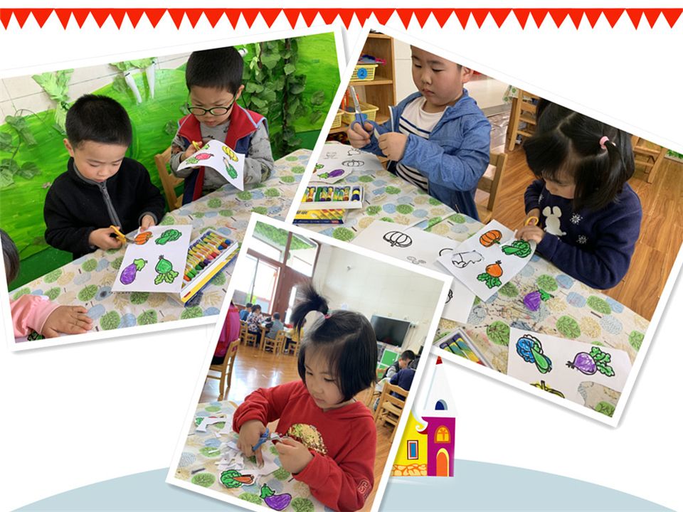 蔬菜宝宝白白的身体好像少了点什么,看我手中的彩笔为它变出一件五彩的新外衣。涂好颜色,拿起我的“裁缝刀”沿着服装边缘为它剪裁出最完美的服饰。