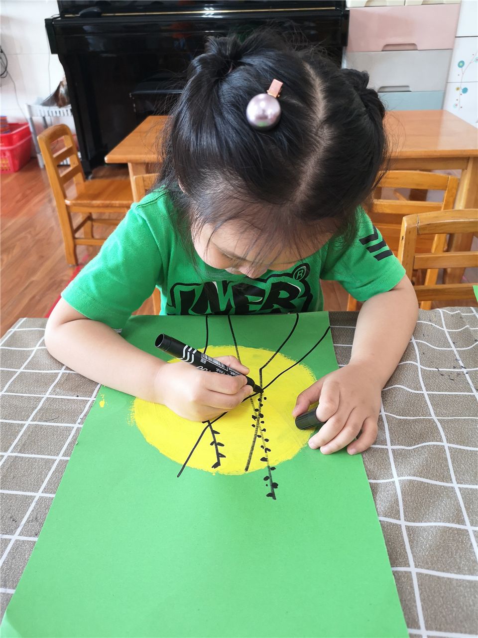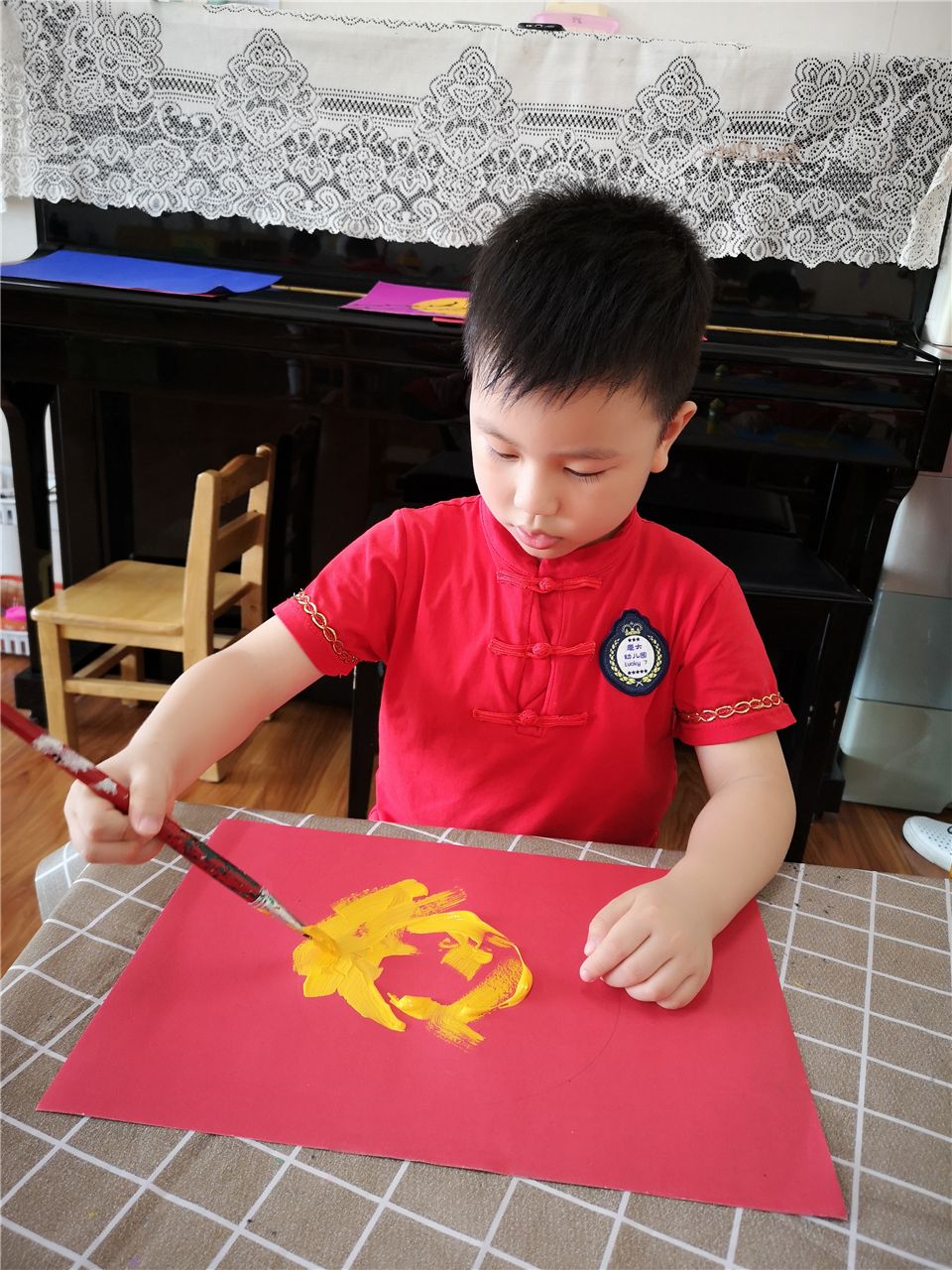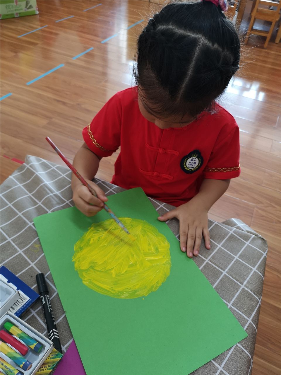 中秋月儿高高挂,中秋月儿圆又圆。老师,中秋的月亮太美了,我好想把它画进我的画里。看,我们在很仔细、很小心的给大月亮涂上颜色,画上小树枝呦。你们说我们画的月亮好看吗?