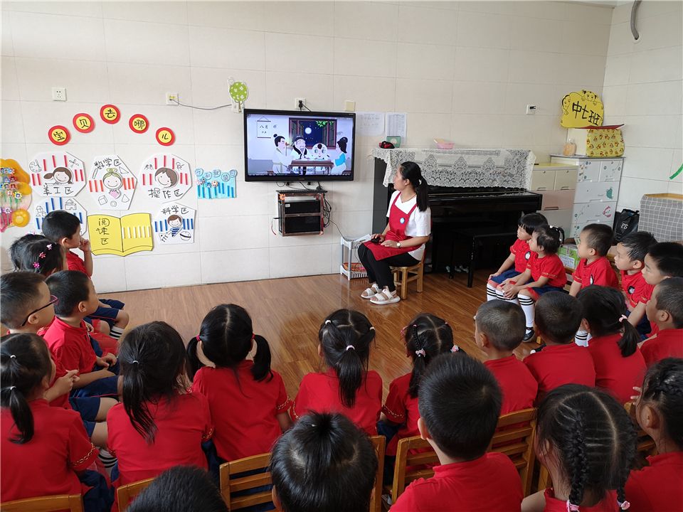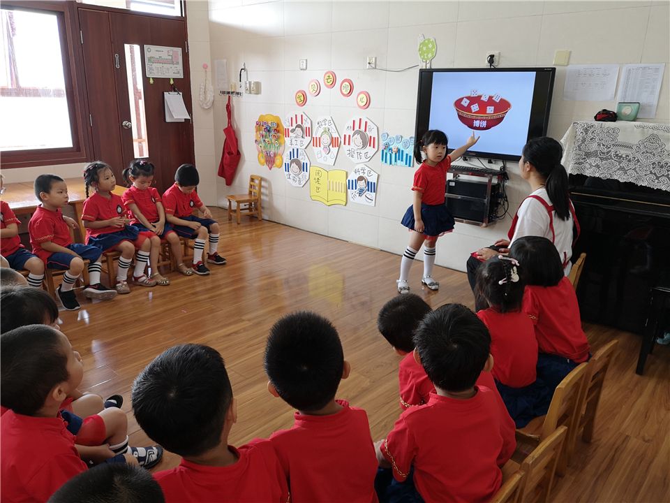 就这样,宝贝们带着问题和老师、同伴开启了一轮话中秋的大讨论。瞧,老师结合精美的PPT通过生动的故事、有趣的谜语、丰富的游戏等方式,让宝贝们了解中秋节的来历与典故,进一步感受了具有中国特色的传统文化。