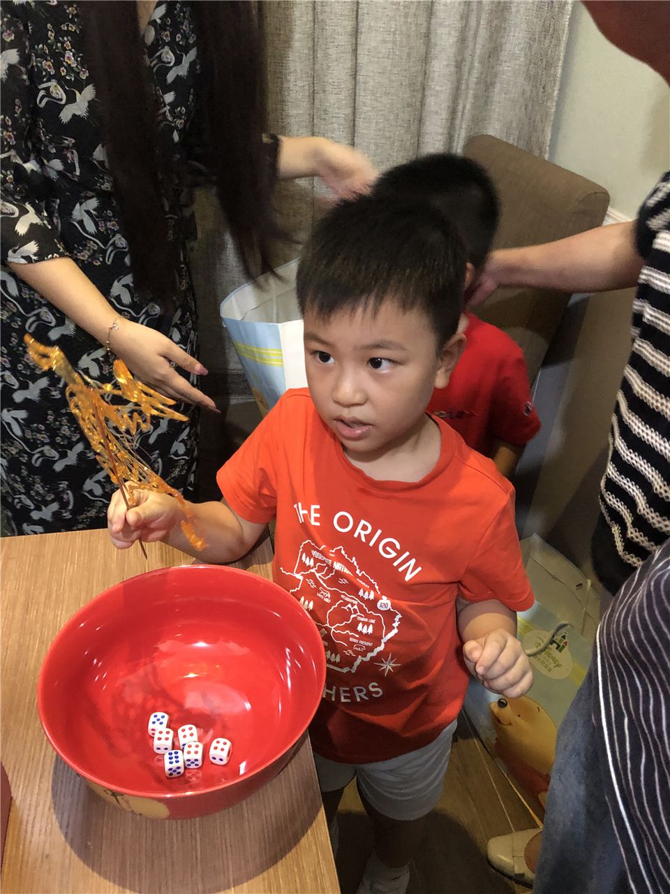 作为厦门的孩子,欢度中秋节当然少不了博饼啦。爸爸妈妈为了让宝贝们也充分感受中秋节的快乐气氛,他们利用周末休息时间,开展了“中秋博饼乐”的亲子活动。哇,看我手气真是旺呀,我博到状元啦!哎呀呀,我是二举哈。就这样,叮叮当当的掷骰子声、欢笑声充满着整个屋子。