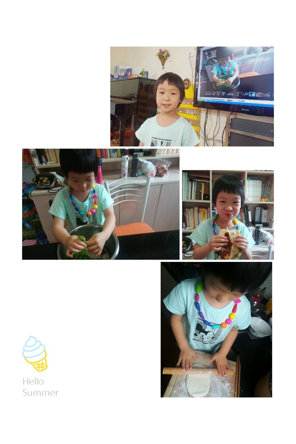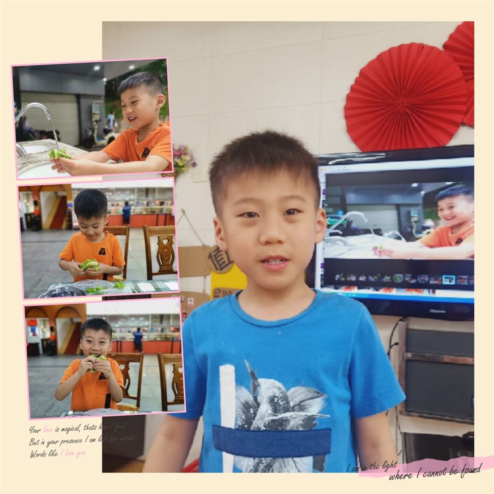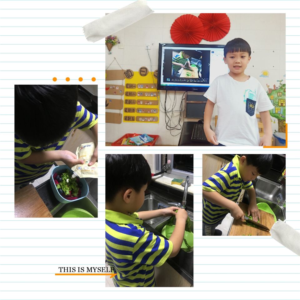美味的三明治,可口的蔬菜沙拉,清爽的蒜蓉炒青菜,……来来来,我们来分享:先把青菜洗一洗,前面后面都要洗干净哦,再把青菜撕成一片一片加点水果,再加点沙拉酱,哇哦!还有还有,我们把青菜洗干净,在锅里放点油,炒一炒,放点盐,真的太太太好吃了,可以吃两碗饭哦!三明治才是最最美味的,先把面包烤一下,放上洗好的生菜、培根,最后抹上一些爸爸一定要我放的枇杷膏,自己动手做的三明治就是好吃!