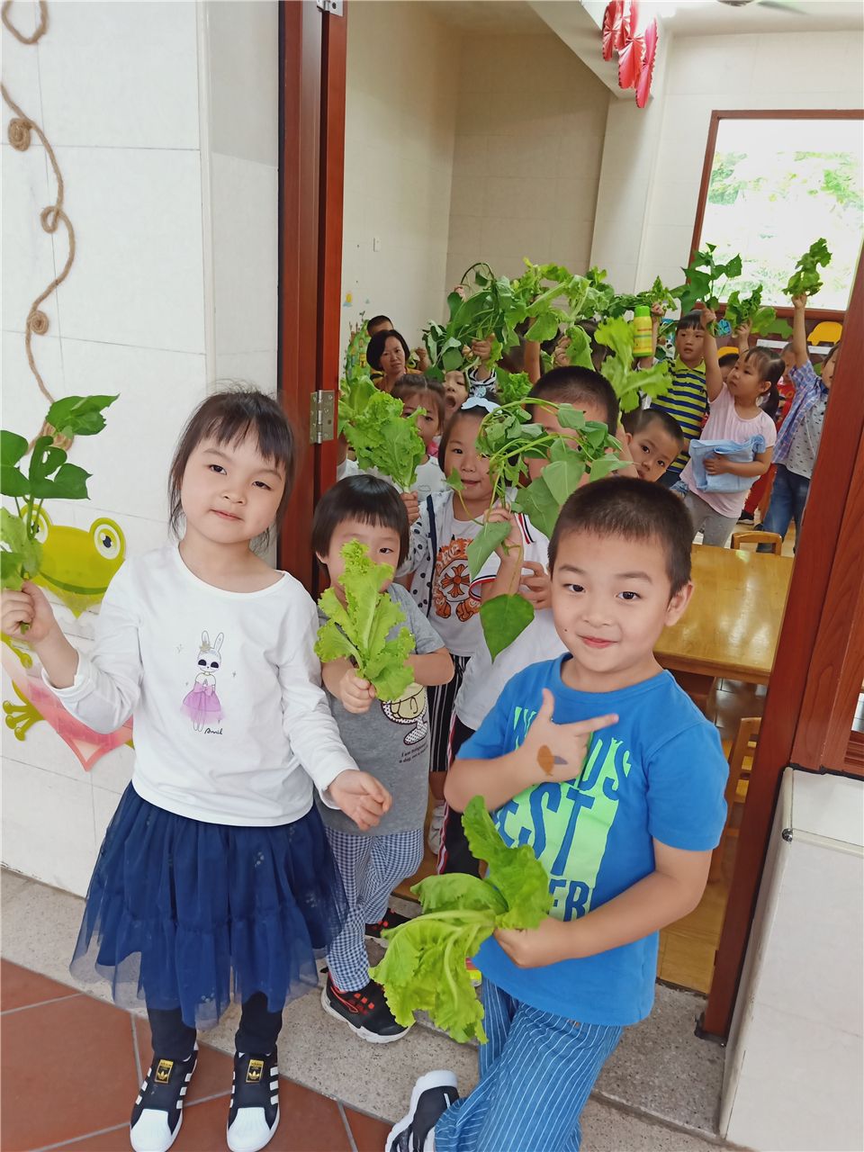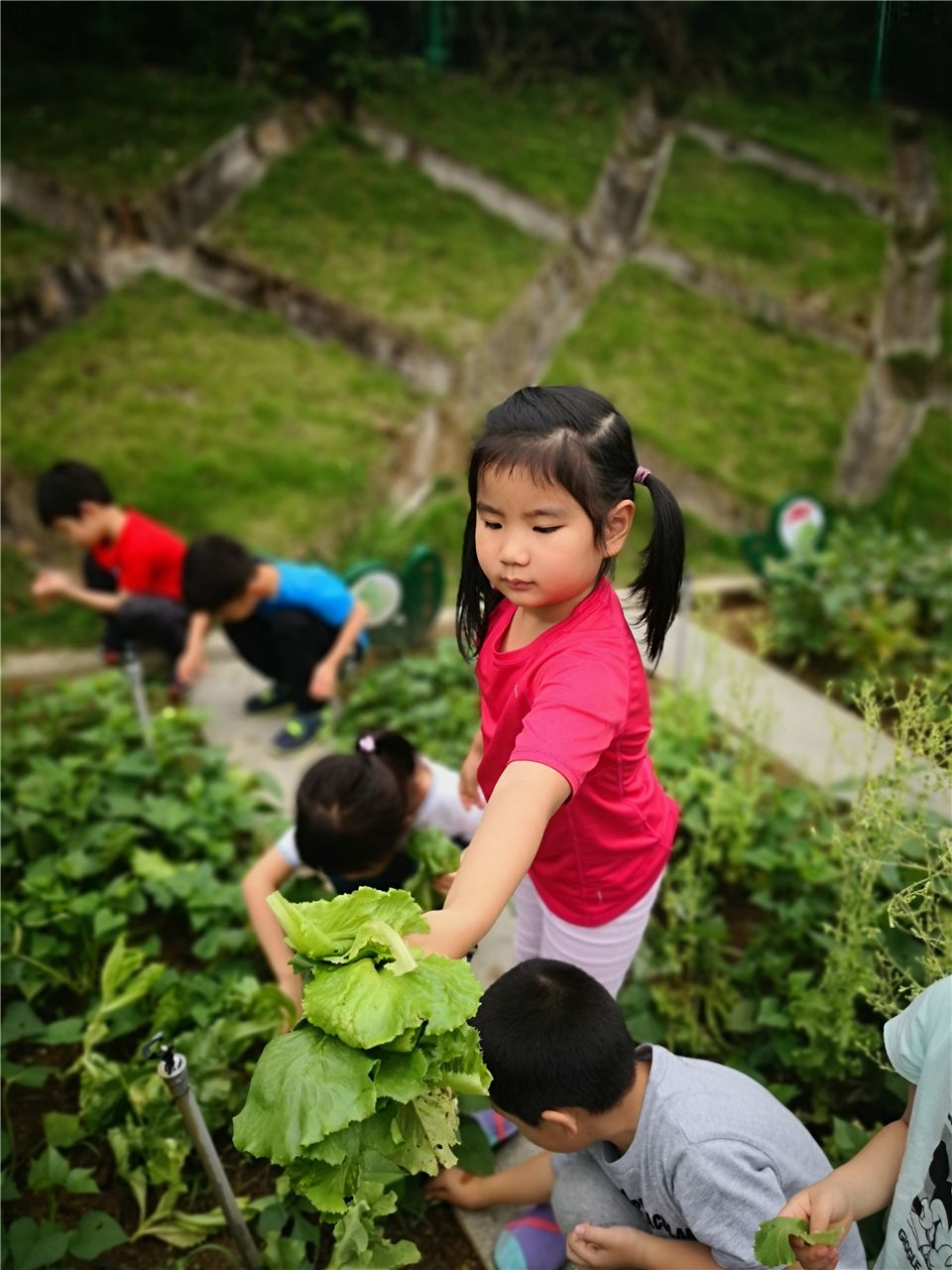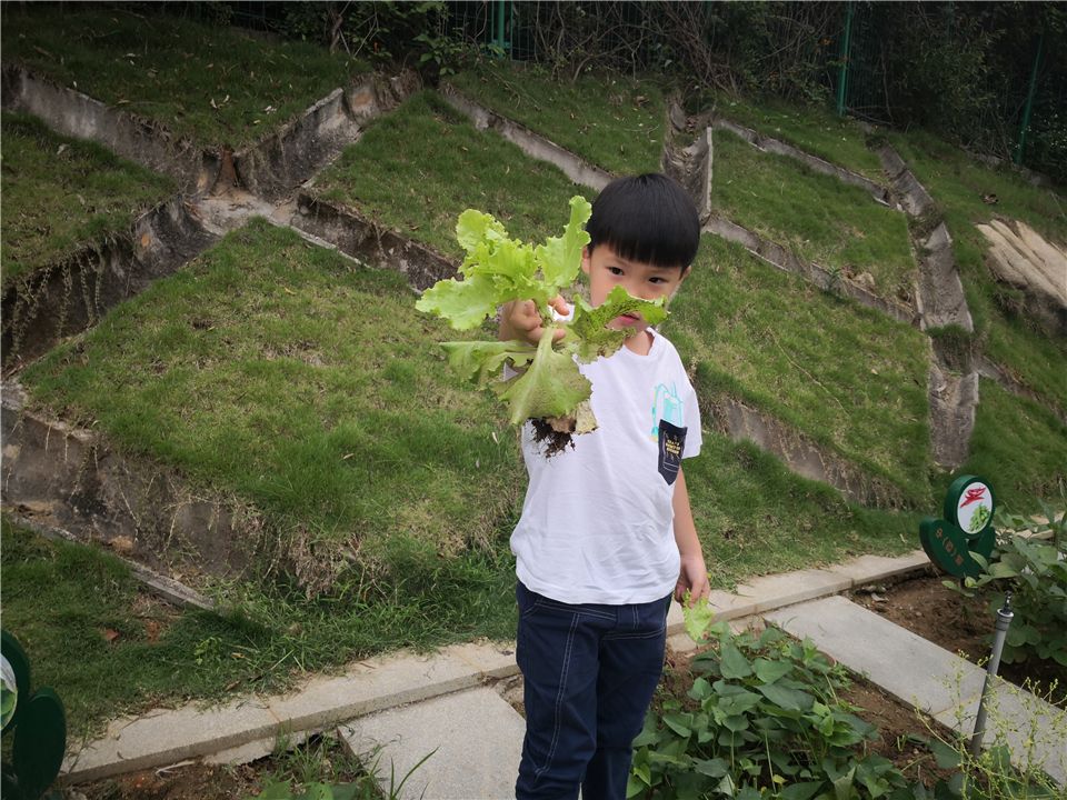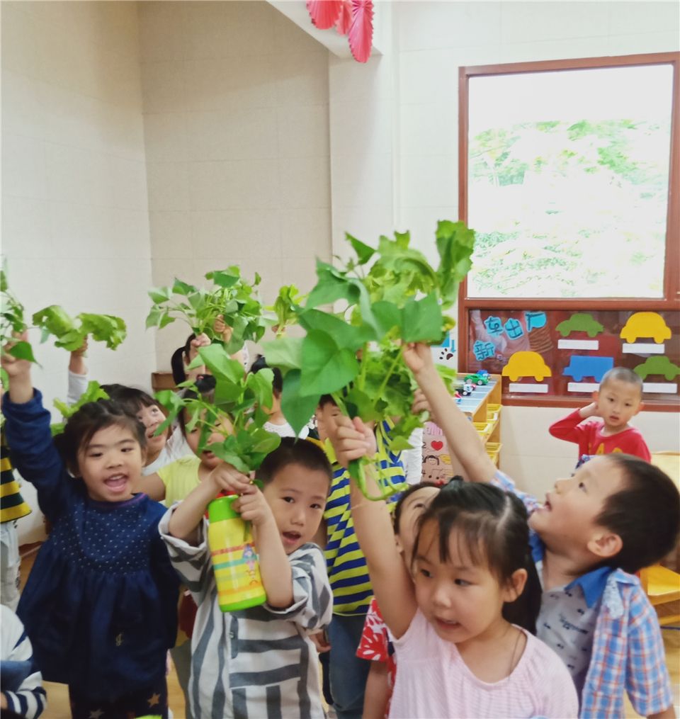 经过我们细心地呵护,种子终于长大啦!小菜园美极了!茂盛鲜嫩的生菜和地瓜叶把田地遮得严严实实,在绿意的衬托下,生机勃勃。叶的顶端,一只小蜻蜓迎风挺立,几只小蜜蜂在欢快地飞舞,嗡嗡地唱着它们欢乐的歌儿。哈哈,不知是哪个贪吃的小馋猫说出了大家的心声:炒起来肯定很好吃。那还等什么呢?动起来吧!