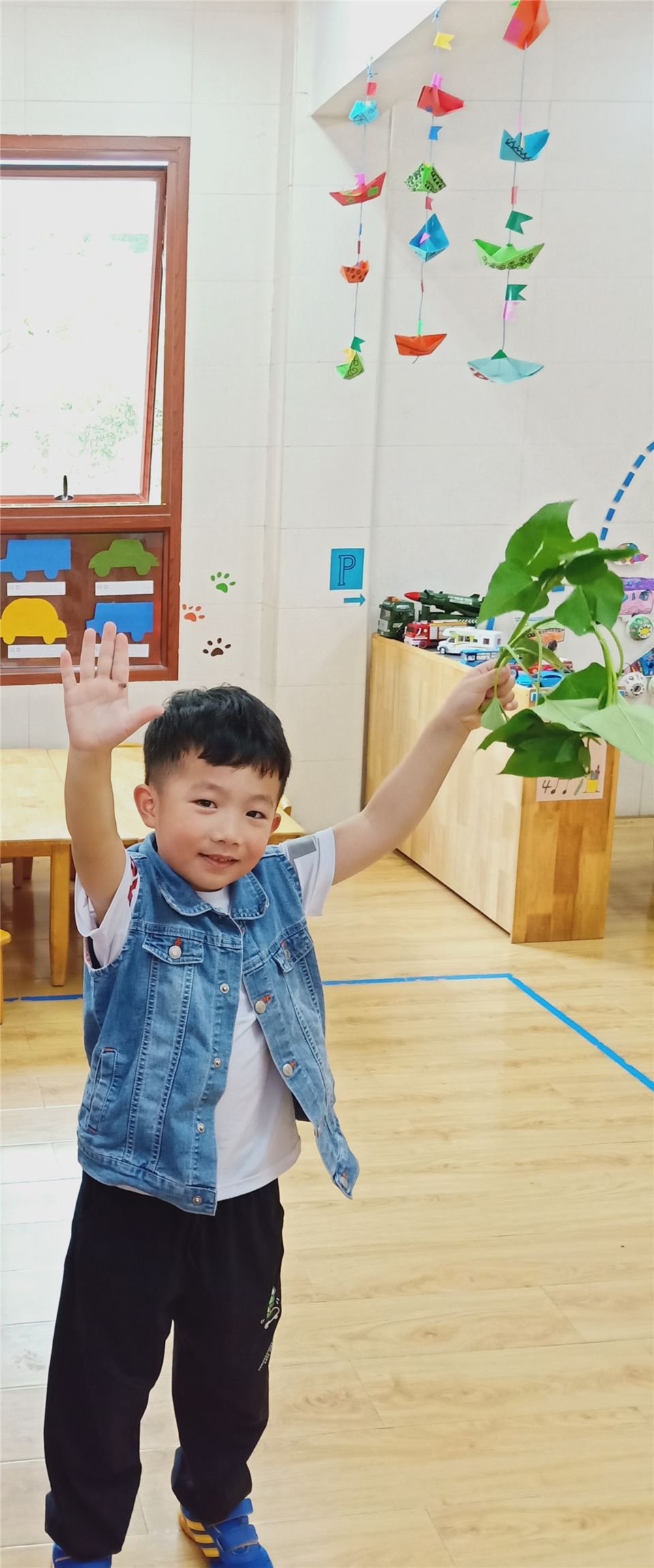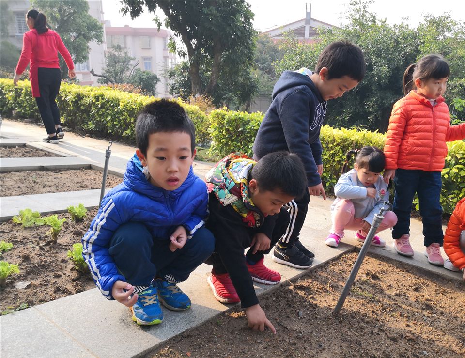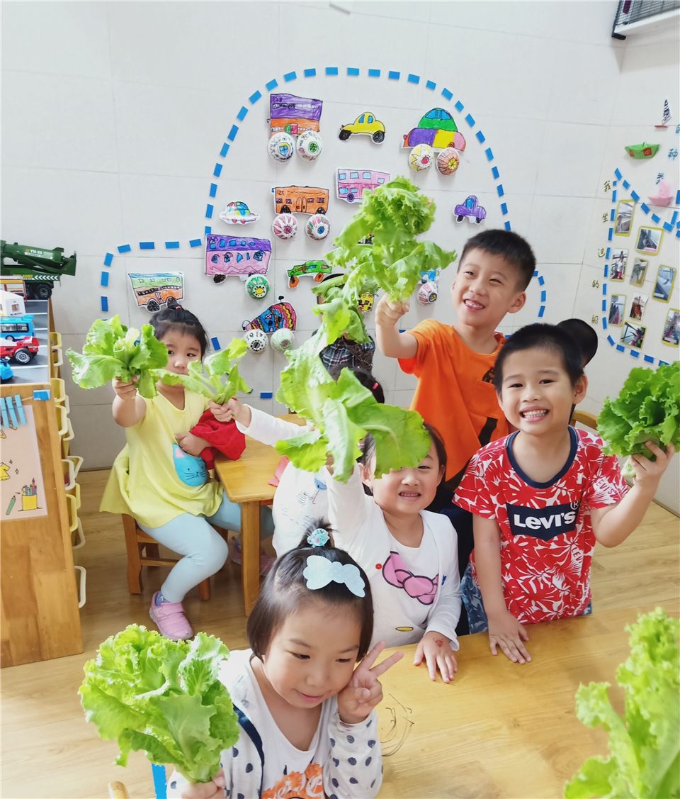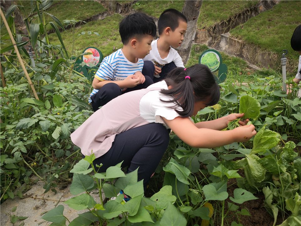 经过我们细心地呵护,种子终于长大啦!小菜园美极了!茂盛鲜嫩的生菜和地瓜叶把田地遮得严严实实,在绿意的衬托下,生机勃勃。叶的顶端,一只小蜻蜓迎风挺立,几只小蜜蜂在欢快地飞舞,嗡嗡地唱着它们欢乐的歌儿。哈哈,不知是哪个贪吃的小馋猫说出了大家的心声:炒起来肯定很好吃。那还等什么呢?动起来吧!