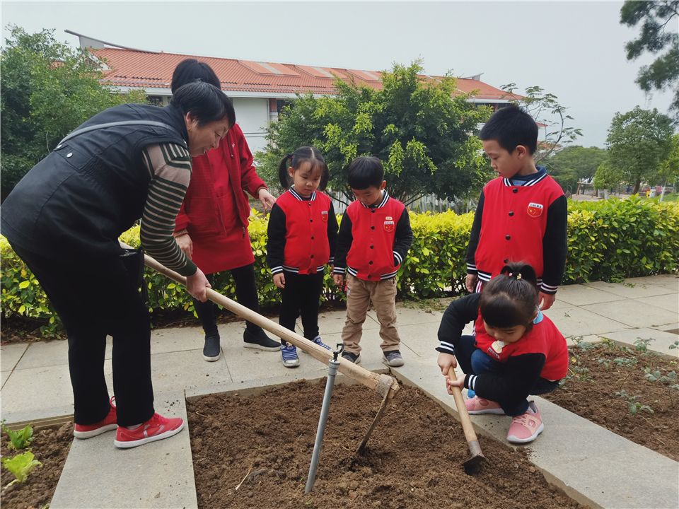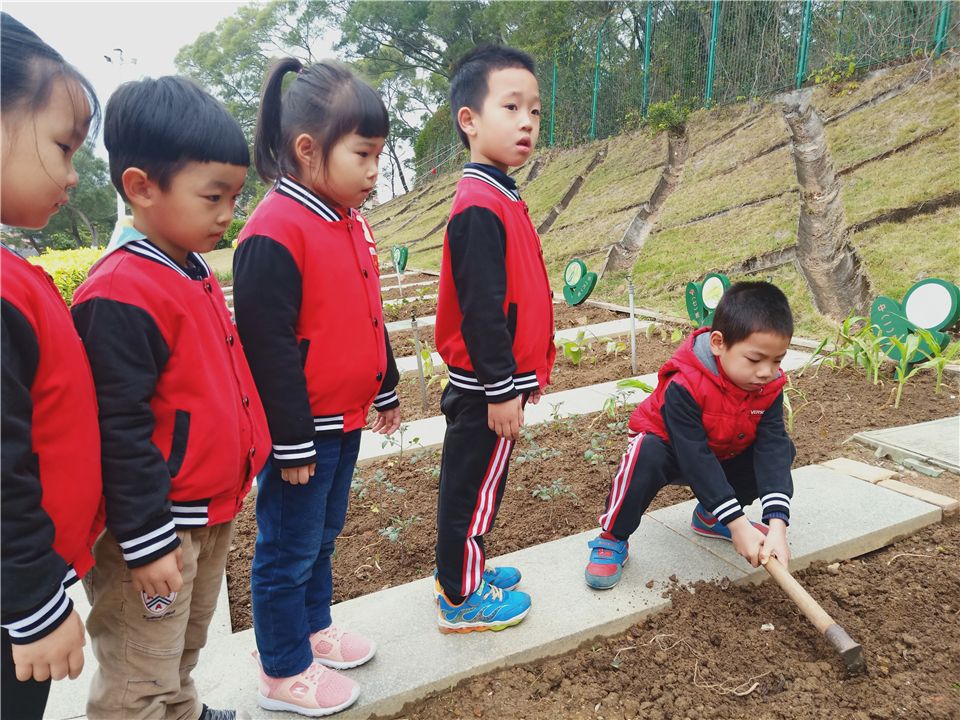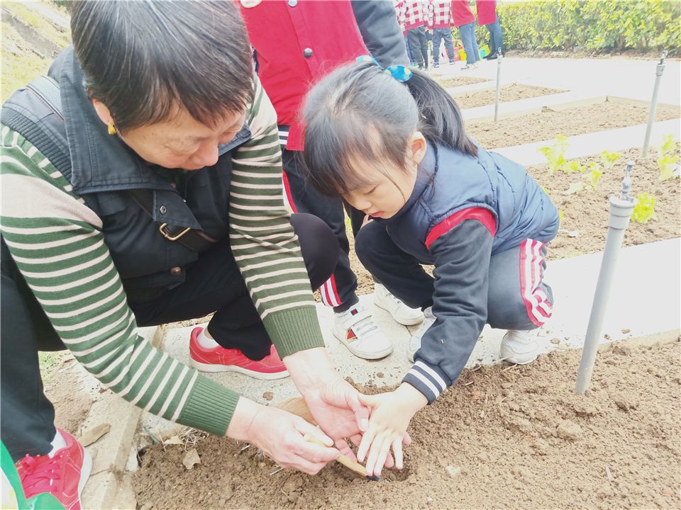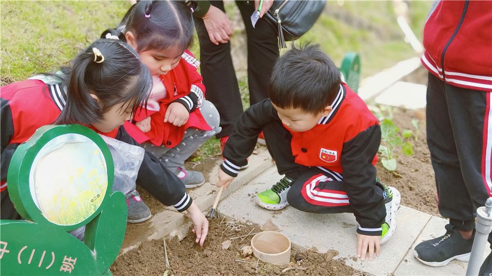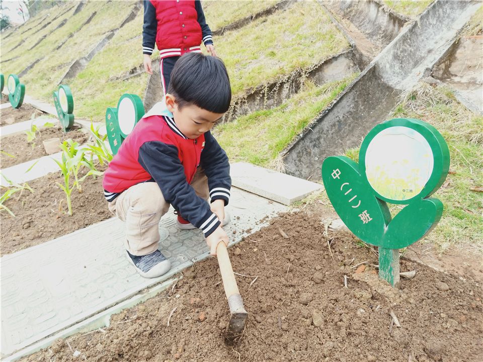 说种就种,别看我们个子小小,抡起锄头来一点也不马虎,先把土儿松一松,再来挖个小洞洞,把我们的宝贝小种子小心翼翼地放到洞洞里,压上土,轻轻地拍一拍,OK!完工!