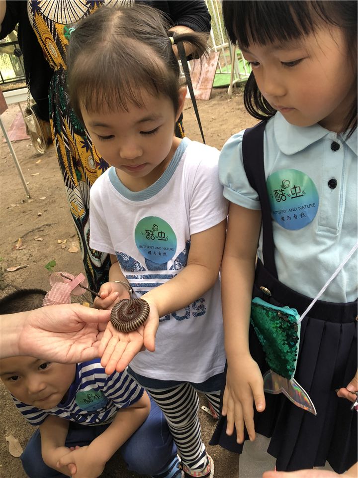 观赏完漂亮的蝴蝶,小朋友来到了酷虫区,酷虫区里的各种昆虫可不像蝴蝶那么漂亮,不过小朋友们却更加喜欢,喜欢霸气的甲虫,皮肤粗糙的蜥蜴,喜欢钻进土里的“土猴”和土拨鼠。小朋友展示了非凡的勇敢,从小心翼翼不敢触碰这些小昆虫,到让小昆虫停留在自己身上、头上。真是为小朋友的勇敢感到骄傲。