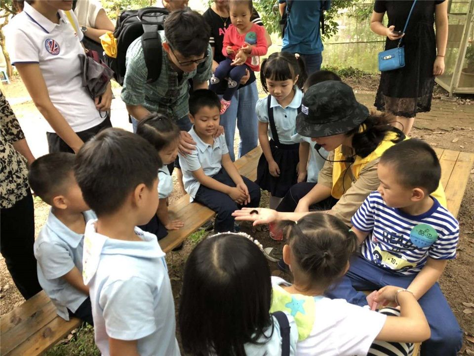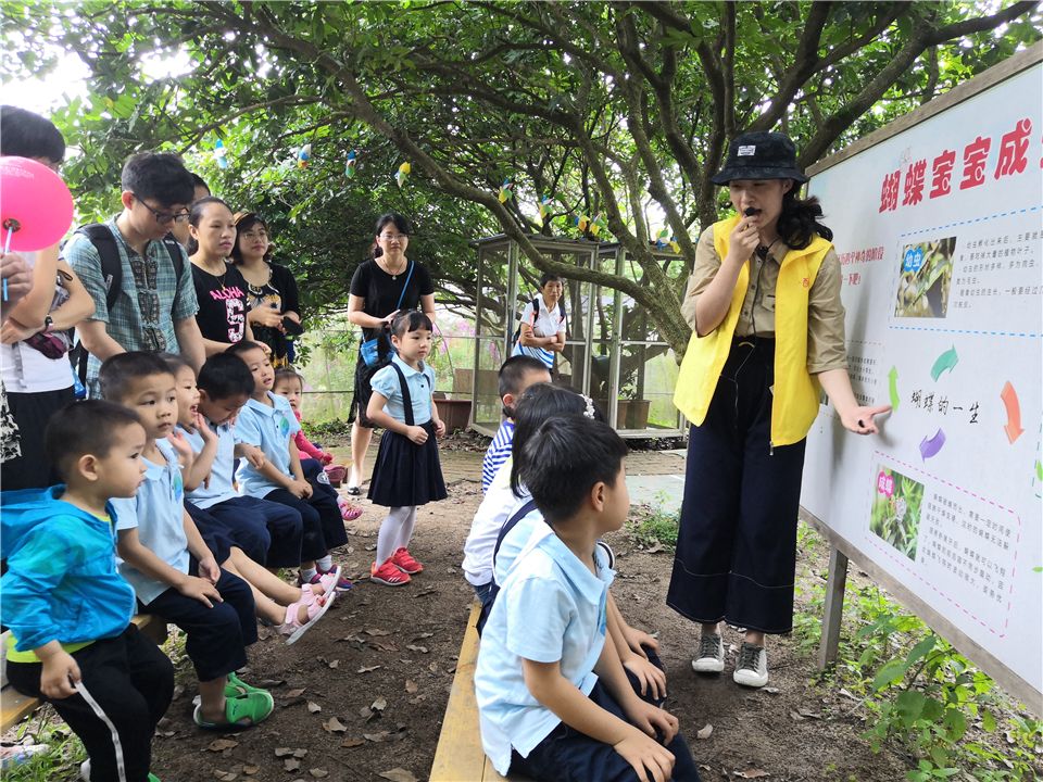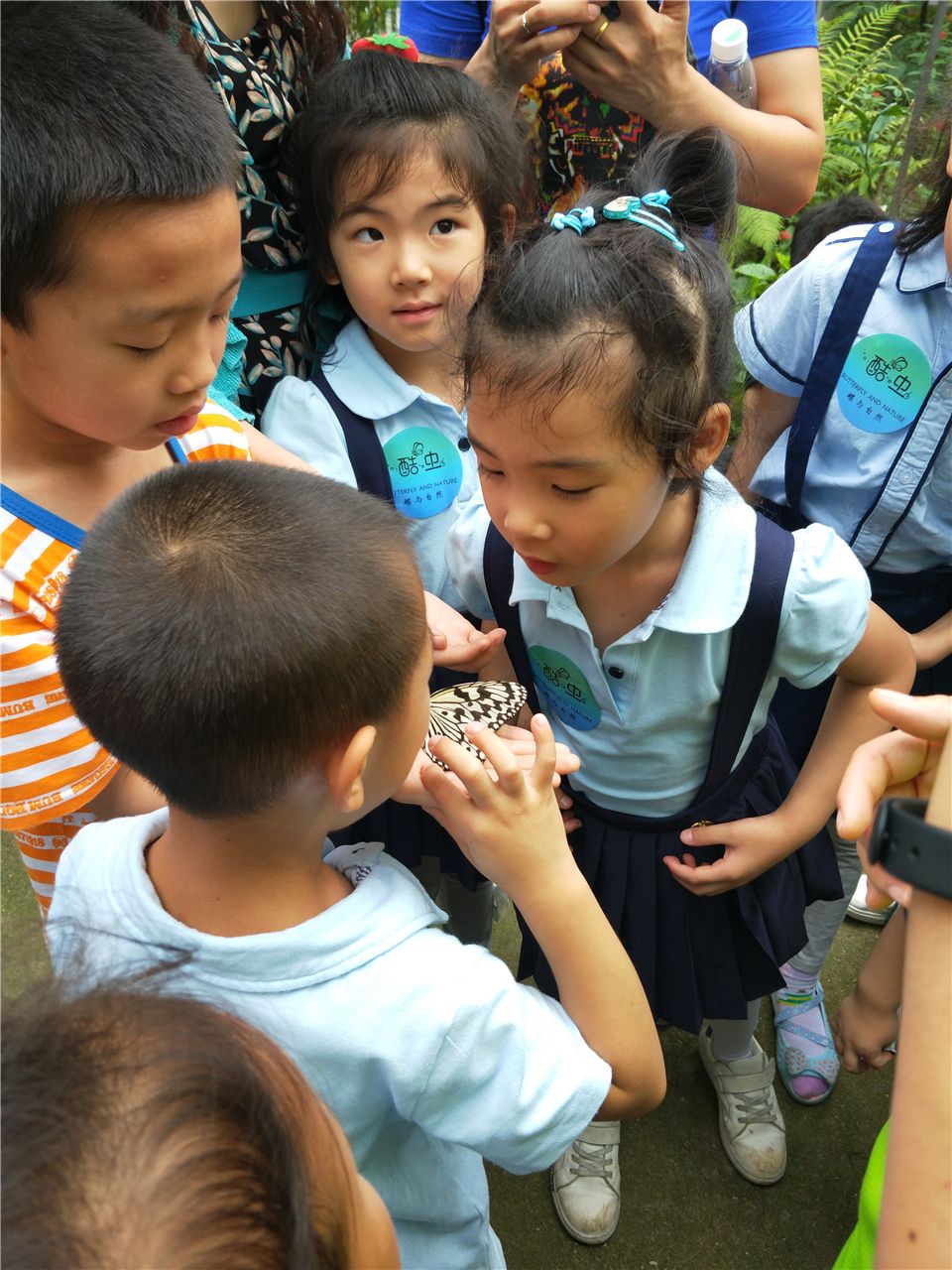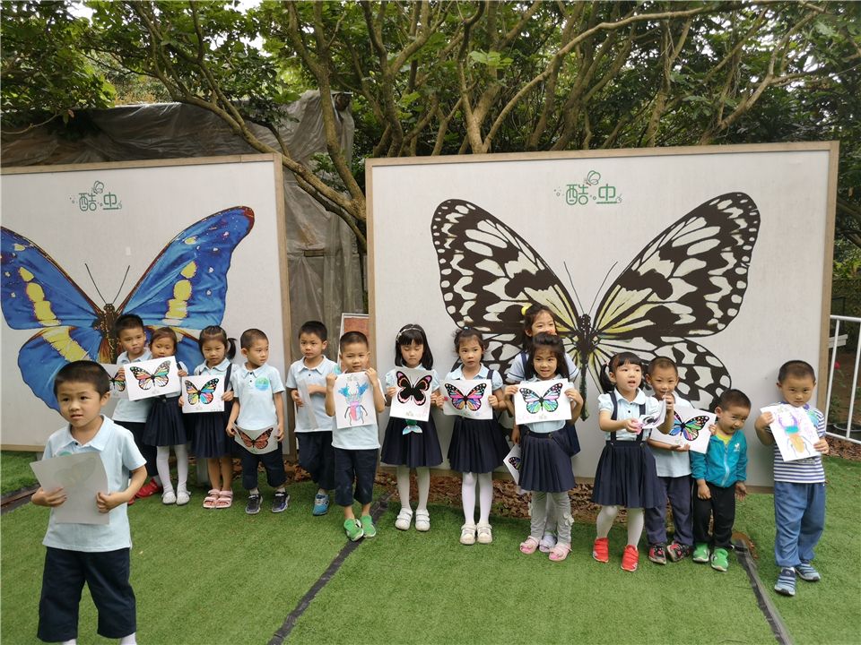 接着小朋友们来到了蝴蝶阳光房,阳光房里种满了蝴蝶喜欢的蜜源植物,十多种蝴蝶品种,近千只蝴蝶。小朋友们最喜欢“熊猫蝶”和“枯叶蝶”,走路时都小心翼翼的,就怕不小心踩到地上的伪装成枯叶的小蝴蝶。