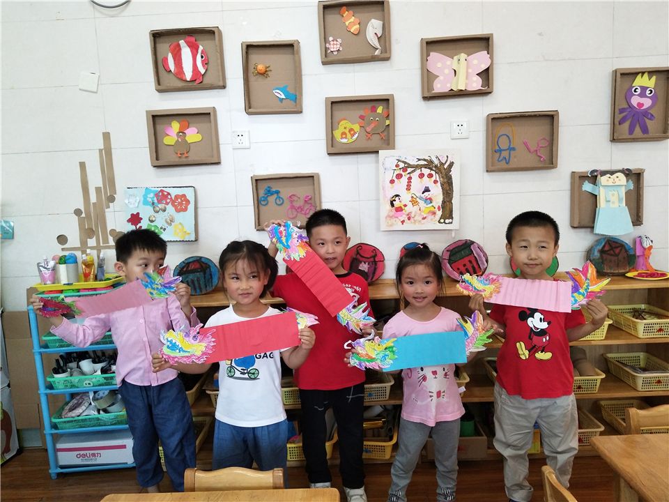 “在龙头和龙尾上涂上自己喜欢的颜色,不一会一条条五彩斑斓的龙就出炉了。”