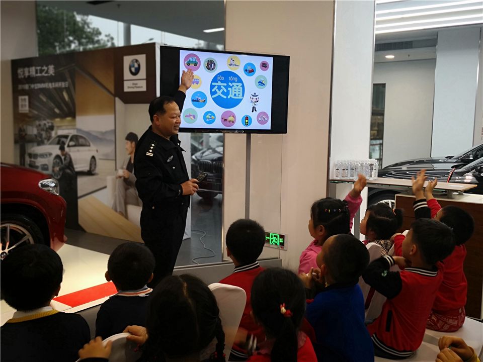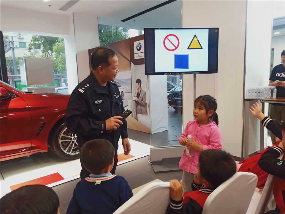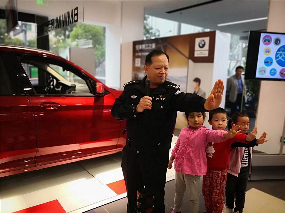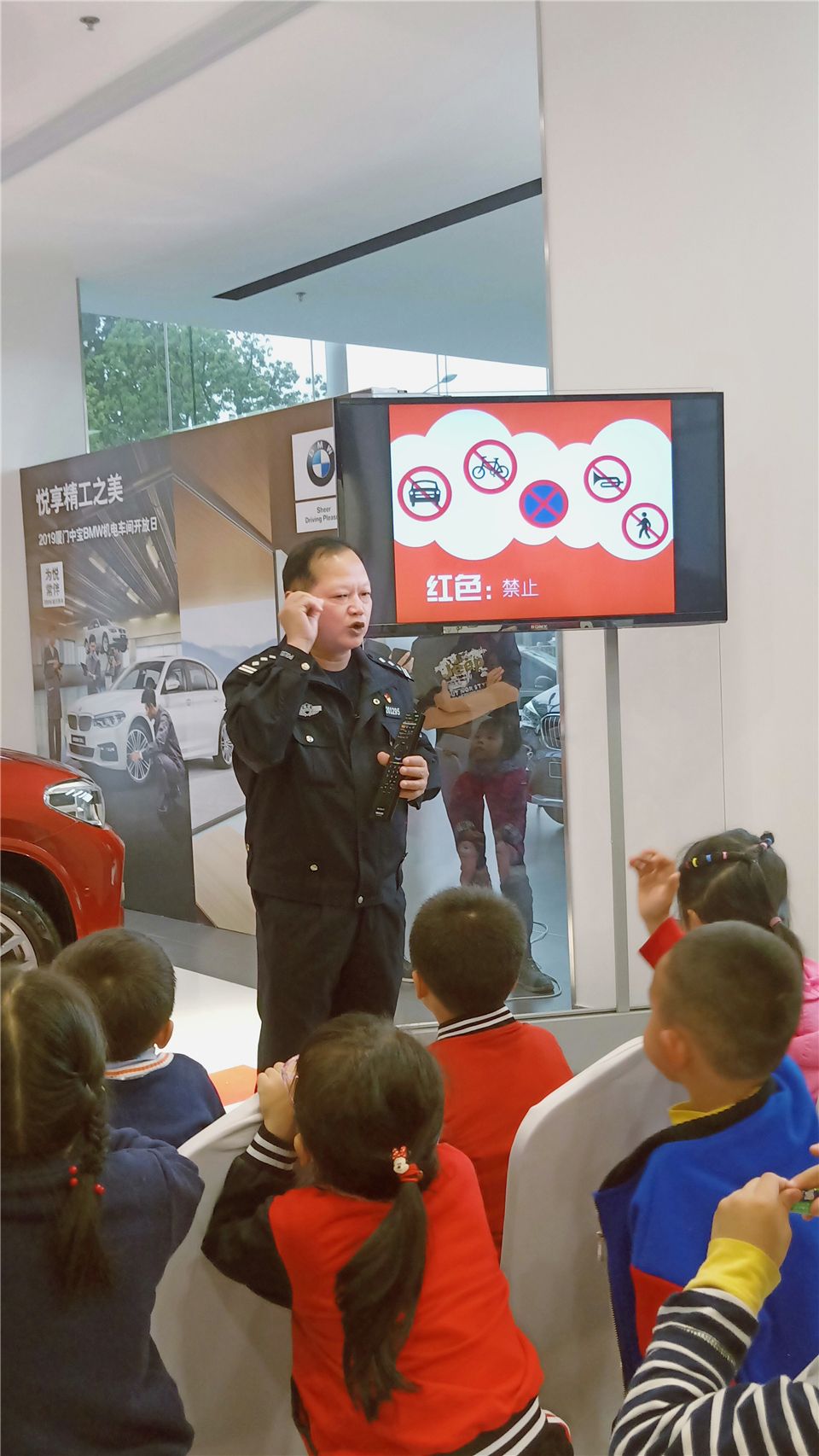 这位来自湖里区交警大队的总教练林警官叔叔可厉害了,他是厦门市所有警察叔叔们的老师哦,在金砖会议期间负责对全市警察进行安全教育培训呢!林警官设计了“情景演练”的现场,为我们讲解如何安全通过马路。小朋友们自告奋勇担当安全出行小榜样,扮演通过斑马线的行人,在遇到有车辆通行时应该如何用手势告知司机。小榜样们演练得非常神气,座位上的小朋友们也禁不住为他们鼓掌叫好。
