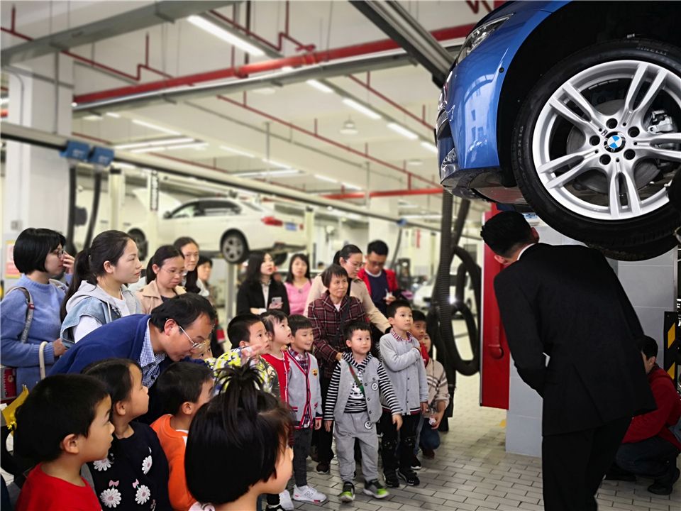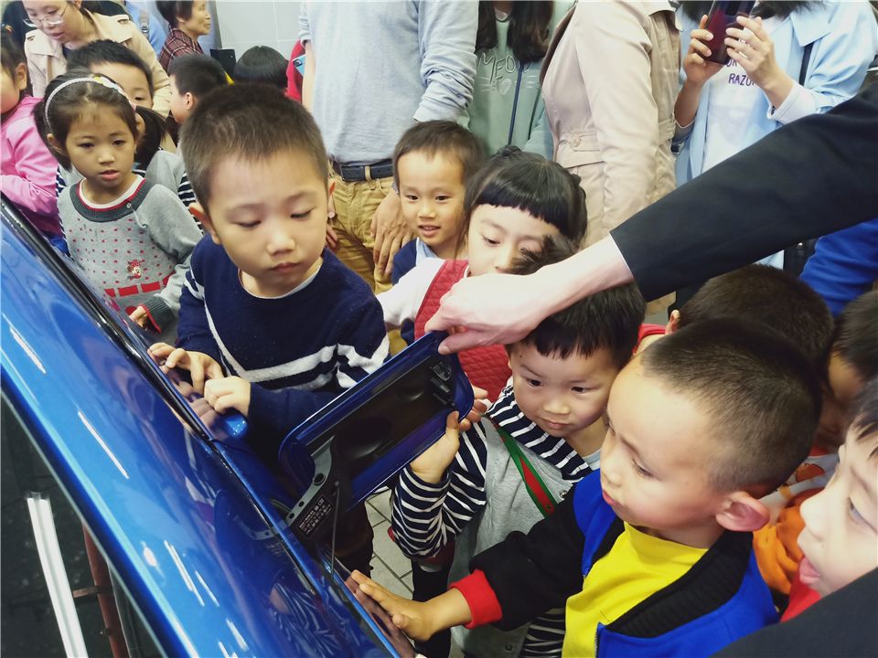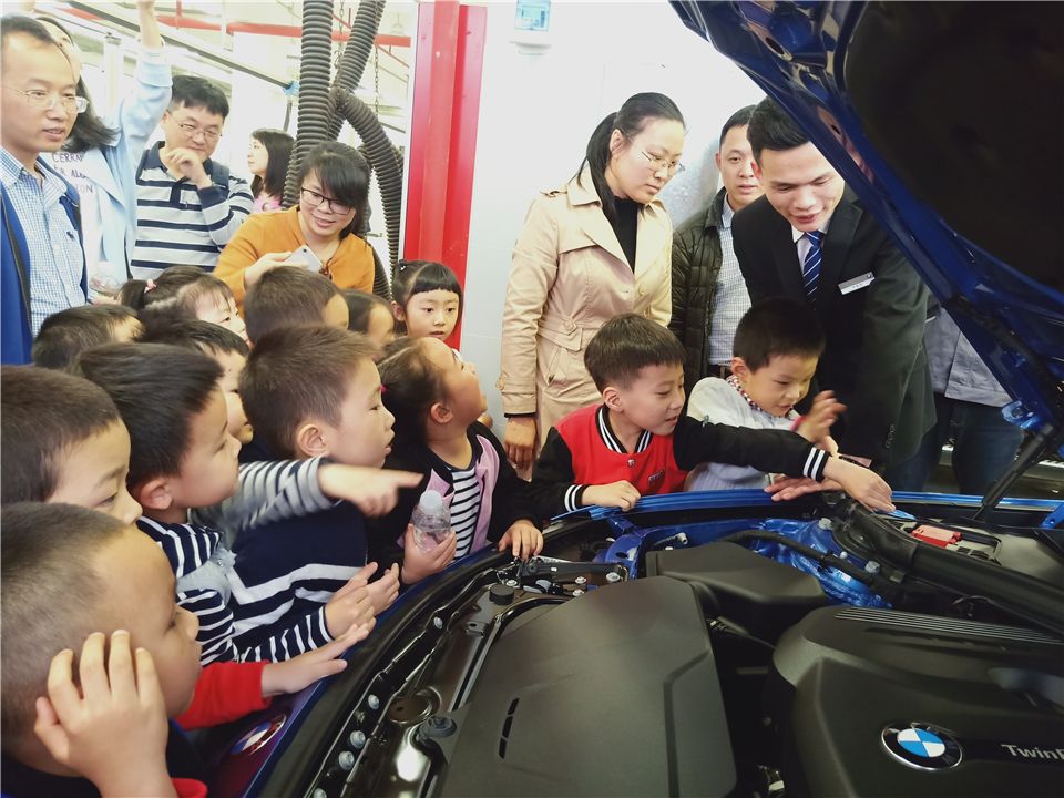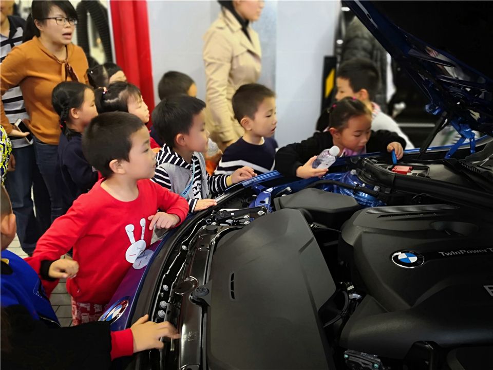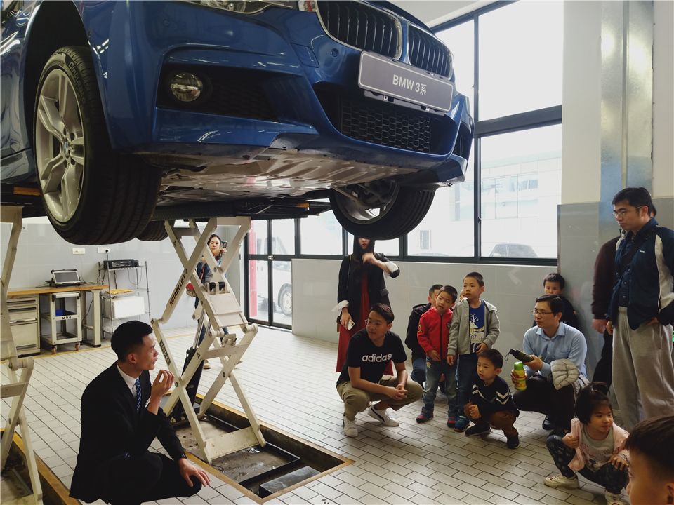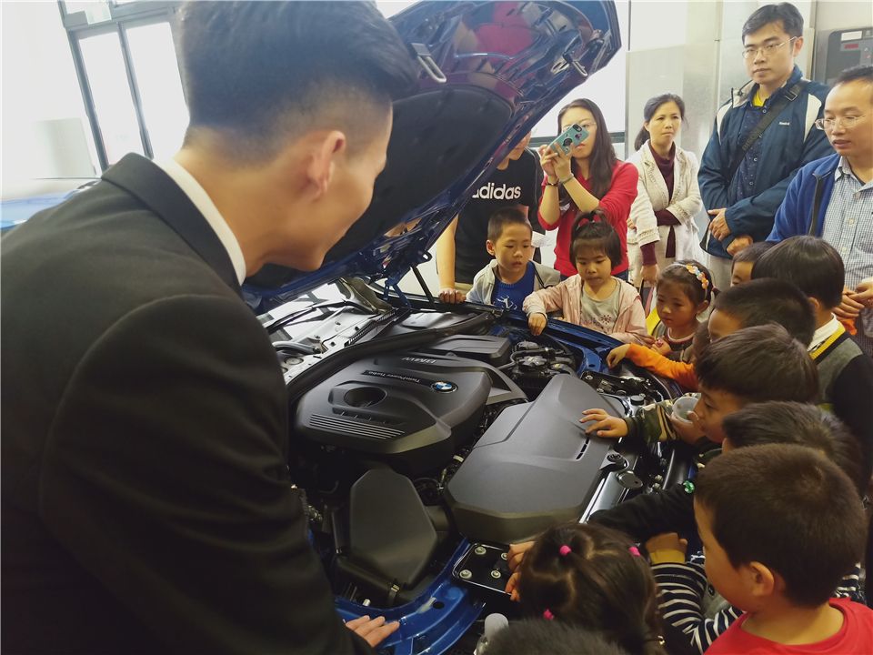 李老师科普了车辆的构造和动力知识,更为生动有趣地是,他竟然打开了一辆车的前盖让大家去触摸车的心脏——发动机。同时让我们更多了解车辆底部的构造。