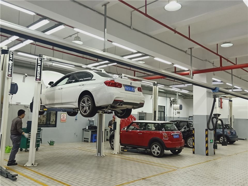 一进去,只见一辆车被高高地吊在空中,旁边还有一些工作人员在几辆车旁边忙碌着。老师告诉我们,这里呀其实就是车的医院,车像我们人一样,也会生病,这时候他们就被送到这里来修理啦!
