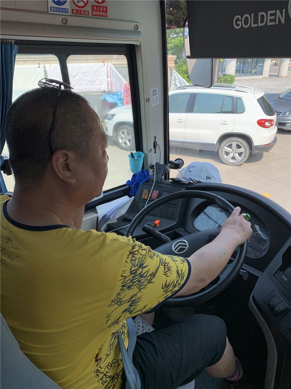 这就我们今天带我们去南湖公园的客车司机叔叔,手握方向盘是不是看起来很神气、很威风呀!