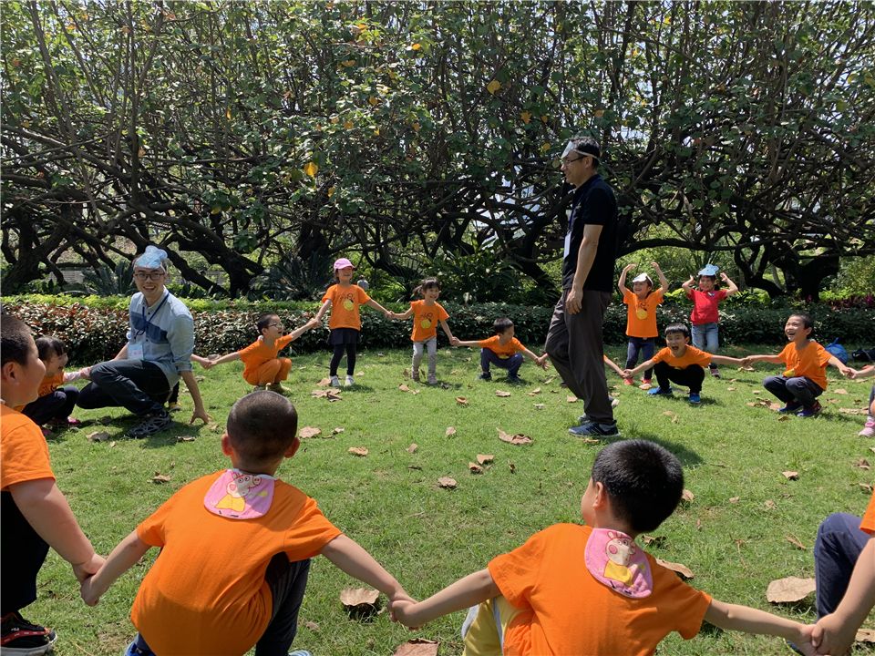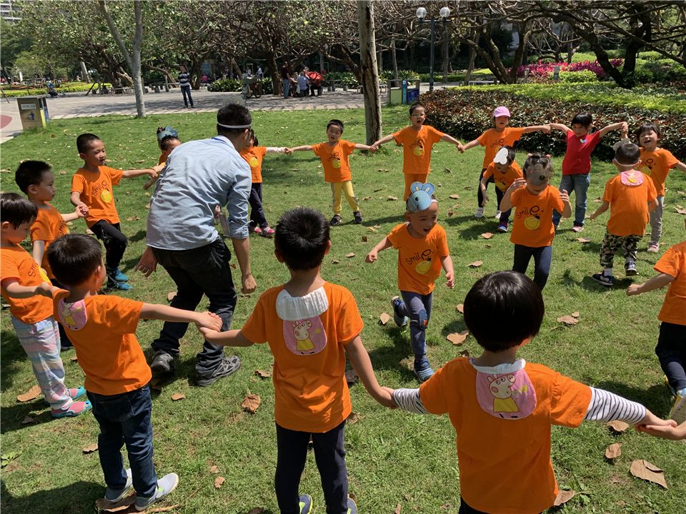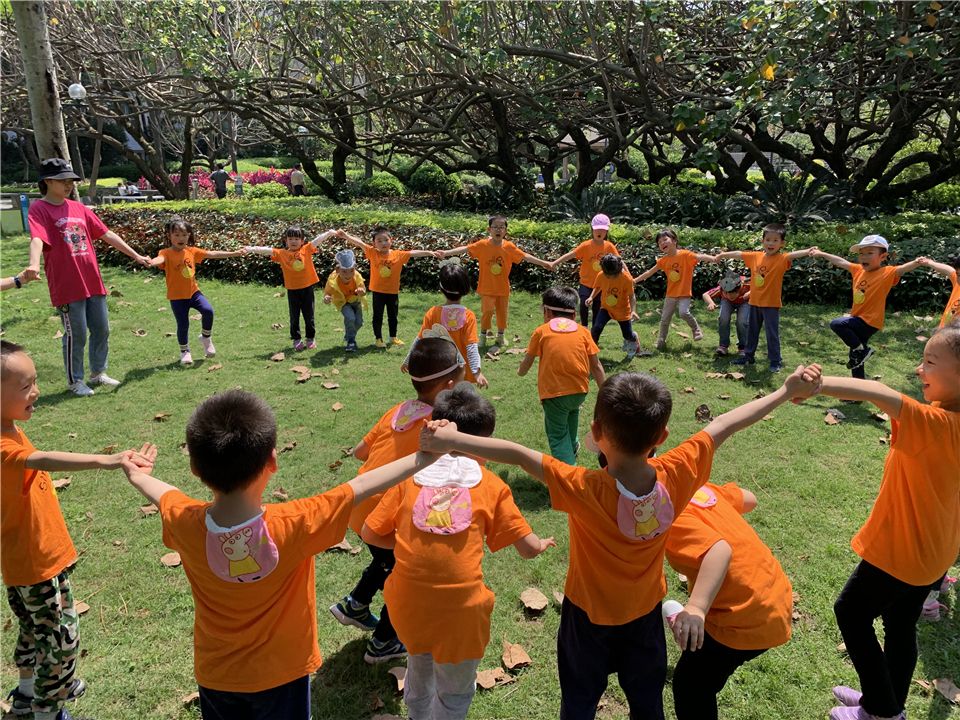 草地游戏环节开始了,小朋友开心地合作玩起了《老鼠笼》的游戏:“老鼠、老鼠坏东西,偷吃粮食偷吃米,我们搭起老鼠笼,咔嚓一声抓住你!”
