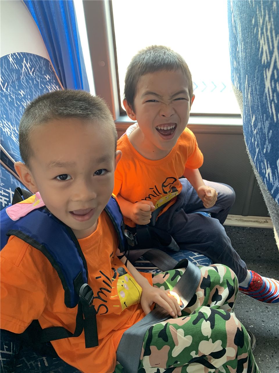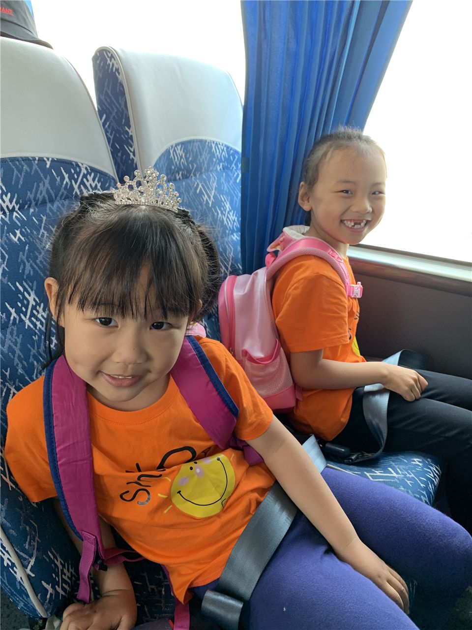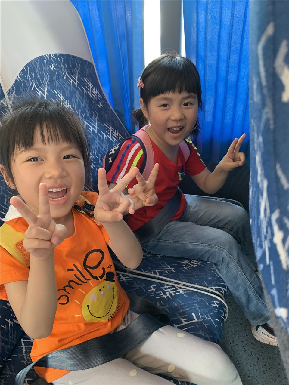 司机叔叔笑眯眯地提醒我们:“小朋友们系好安全带,我们出发吧。”