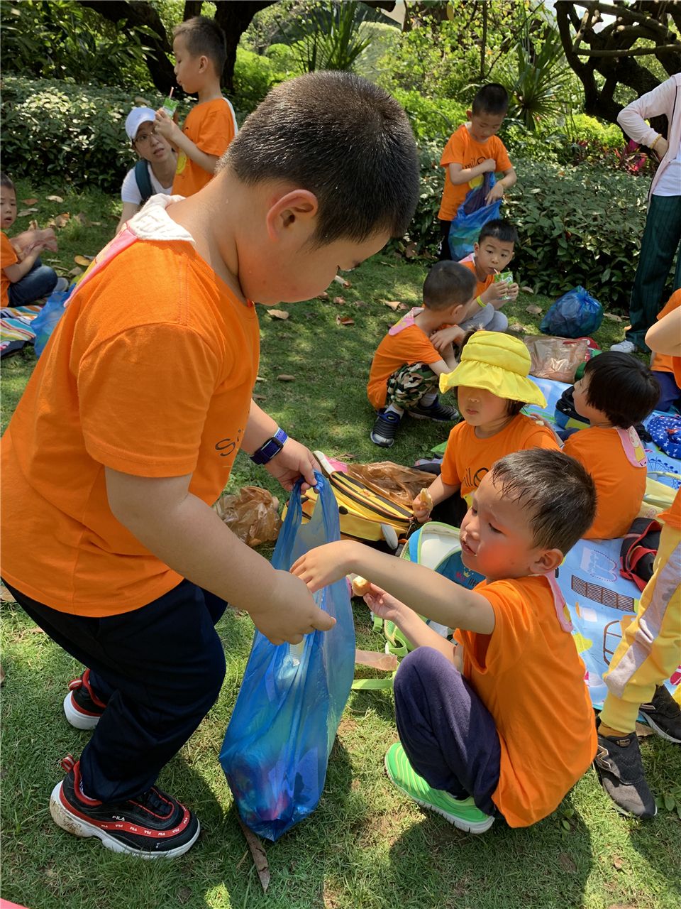 我们是环保小卫士,自己的垃圾自己带走,可不能污染我们的环境哟!