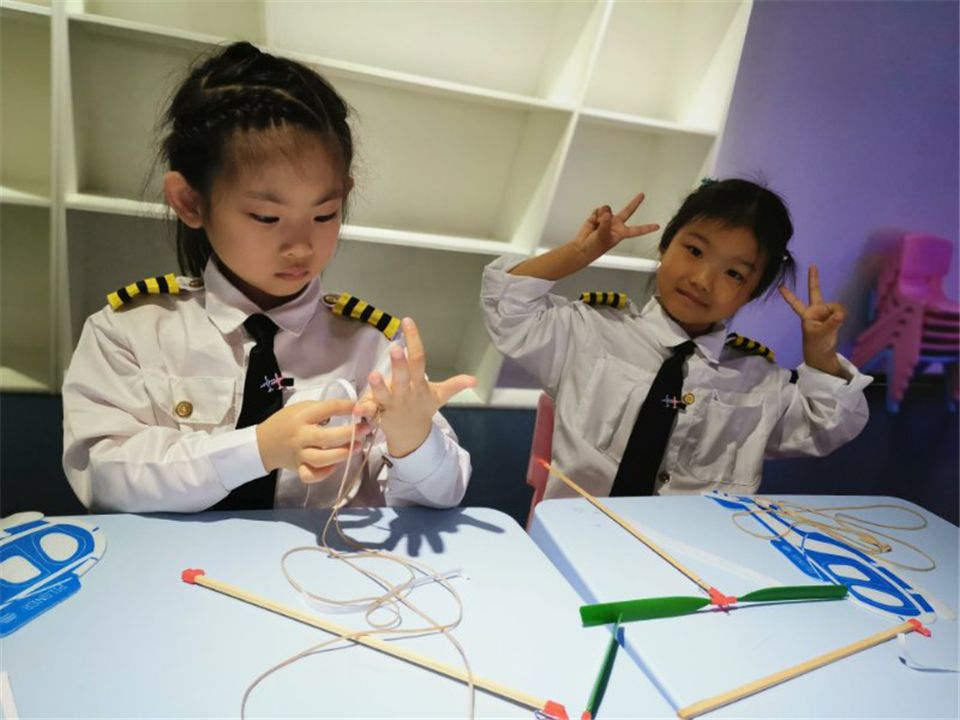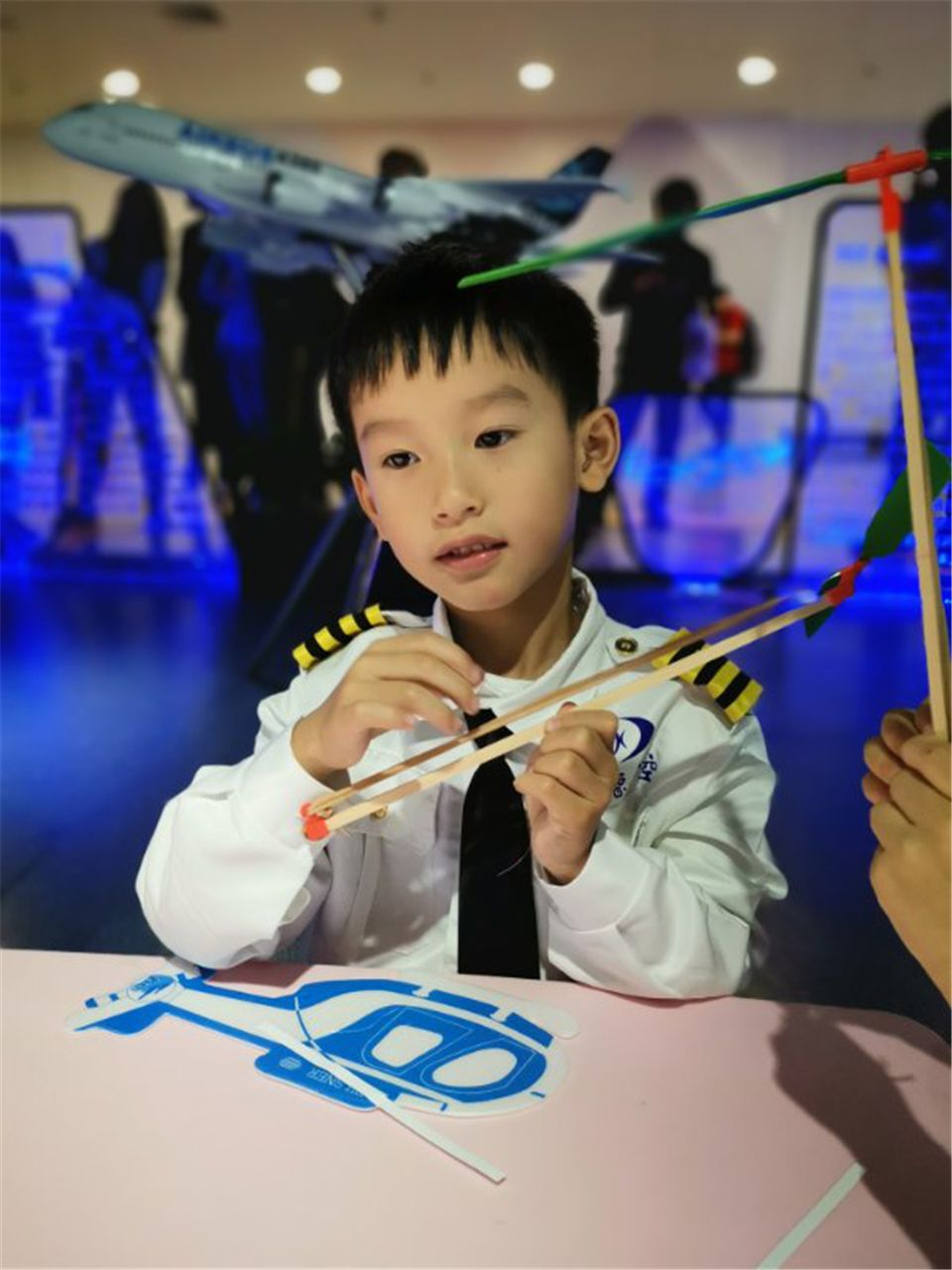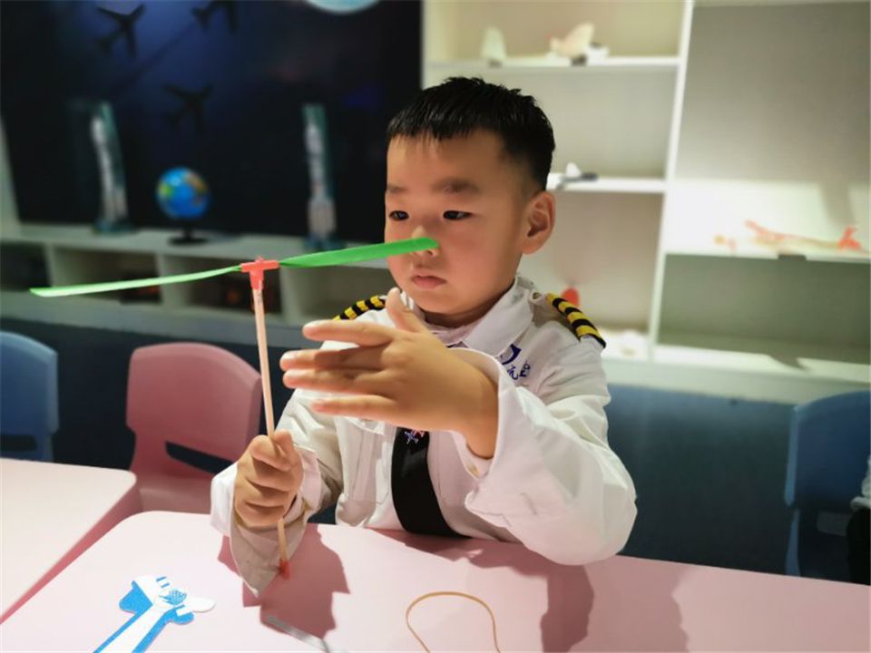 到了孩子们最爱的航模手工制作环节咯,我们动手制作航模,了解橡筋动力飞机的飞行原理,深入了解飞机的五大结构。看看我们专注的样子,我们饶有兴趣地探索着。