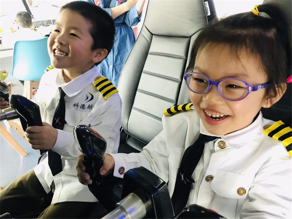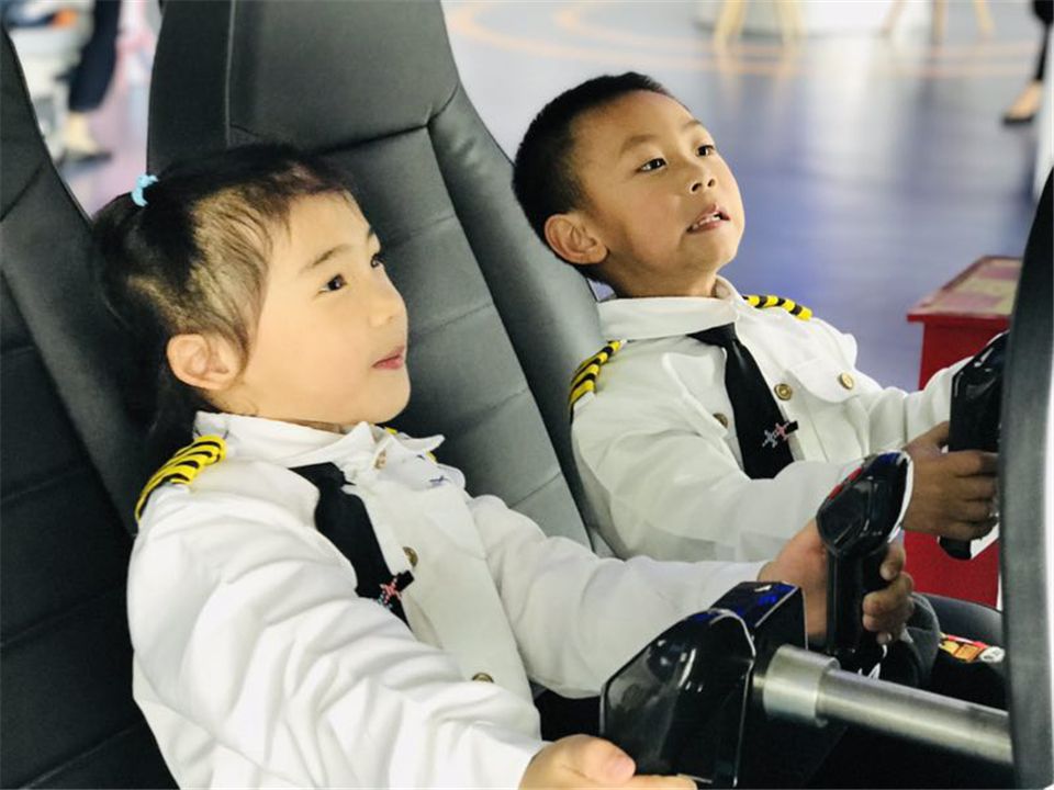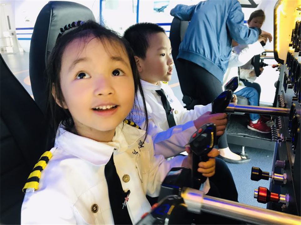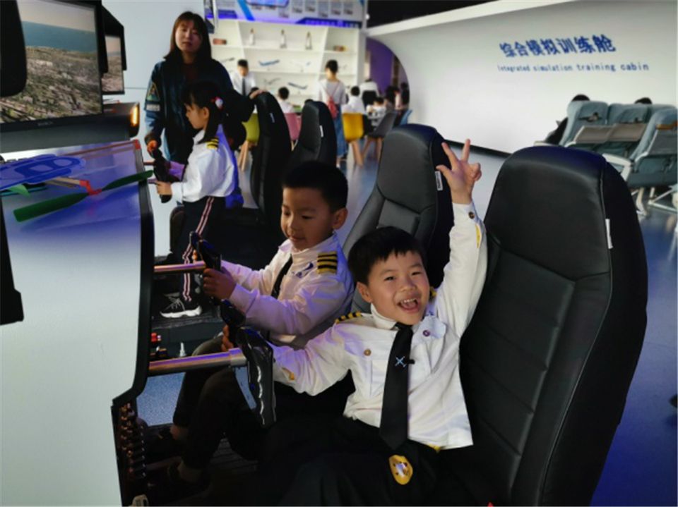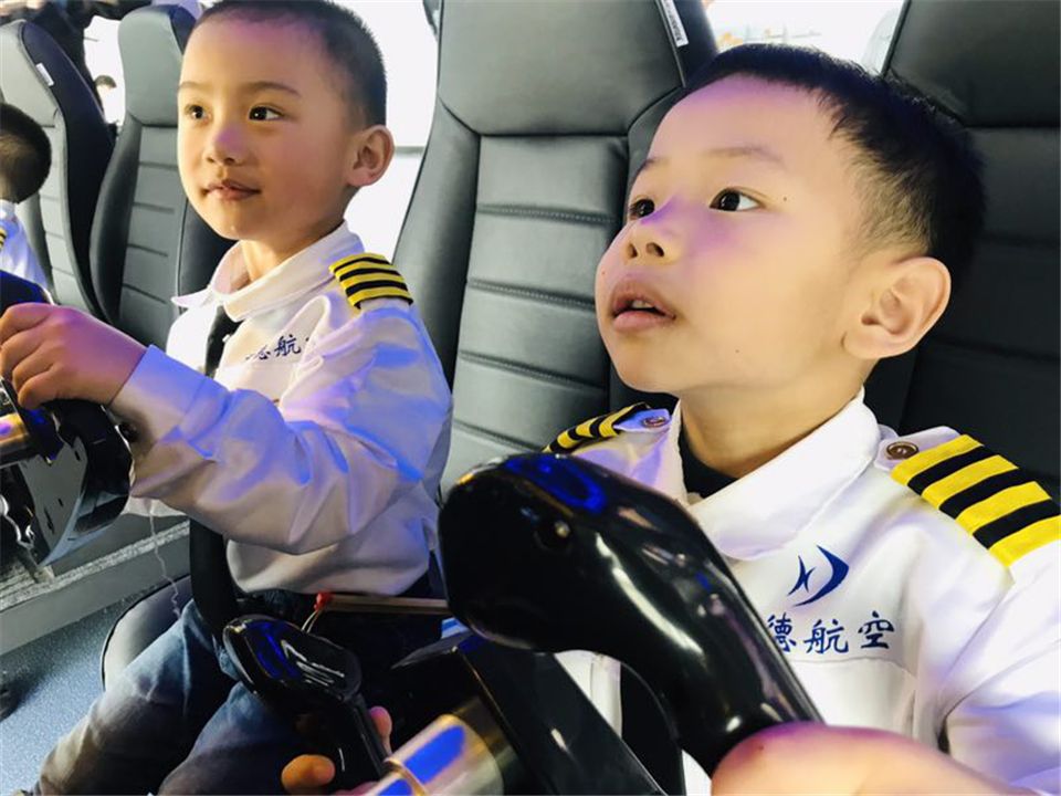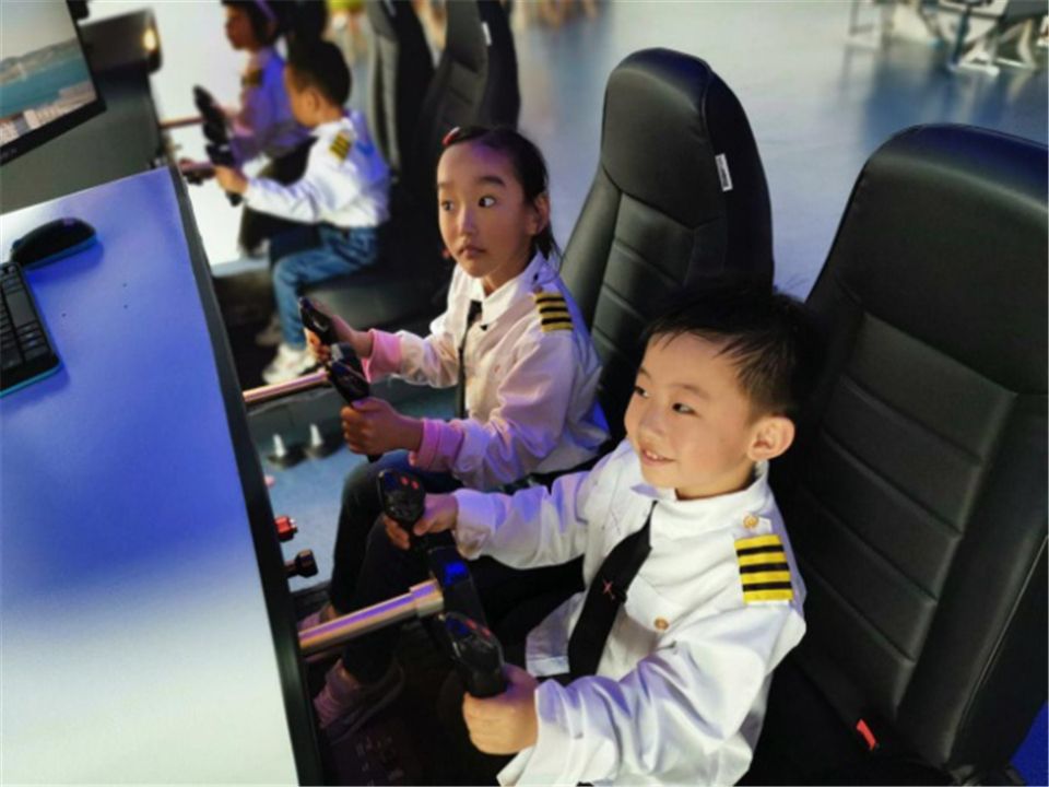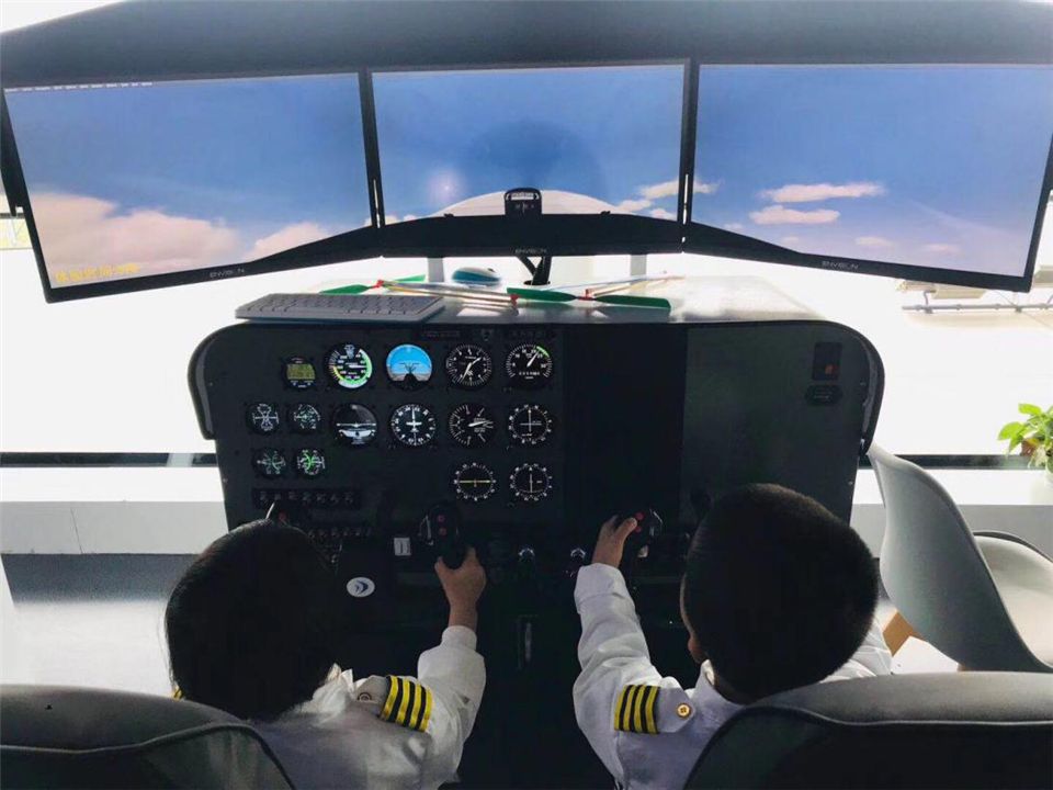 模拟飞行啦!我们学以致用,将刚才跟大哥哥所学的知识运用起来,然后驾驶飞机冲上了云霄。我们操作的要领包括启动飞机、襟翼翼面角度调整、仪表的布局、脚舵作用、控制飞机的俯仰翻滚、横滚、加减速等。操作过程就像身临其境在空中飞行,我们陶醉在其中不能自拔!