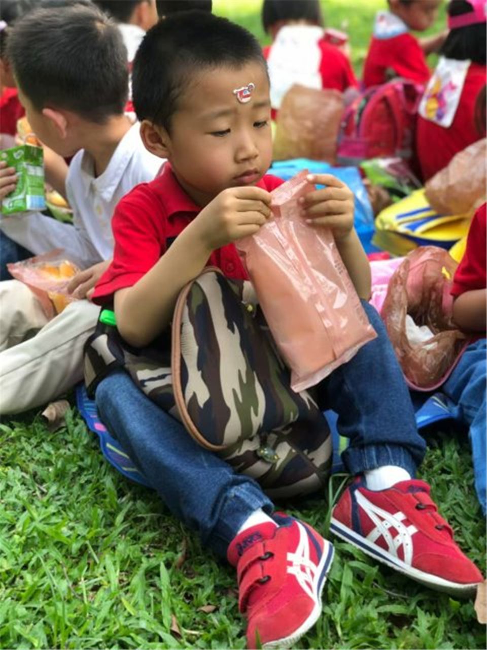 孩子们书包里装了许多好吃的,都迫不及待啦!