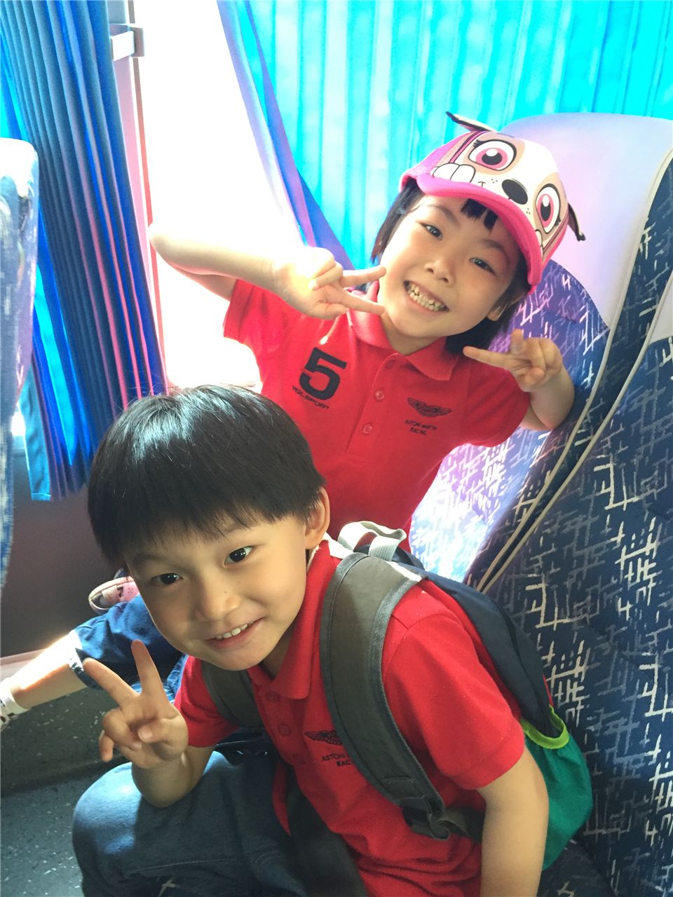 “天蓝蓝,白云飘,背起小书包;花儿开,鸟儿叫,太阳公公笑……”