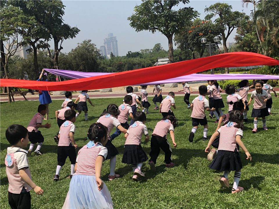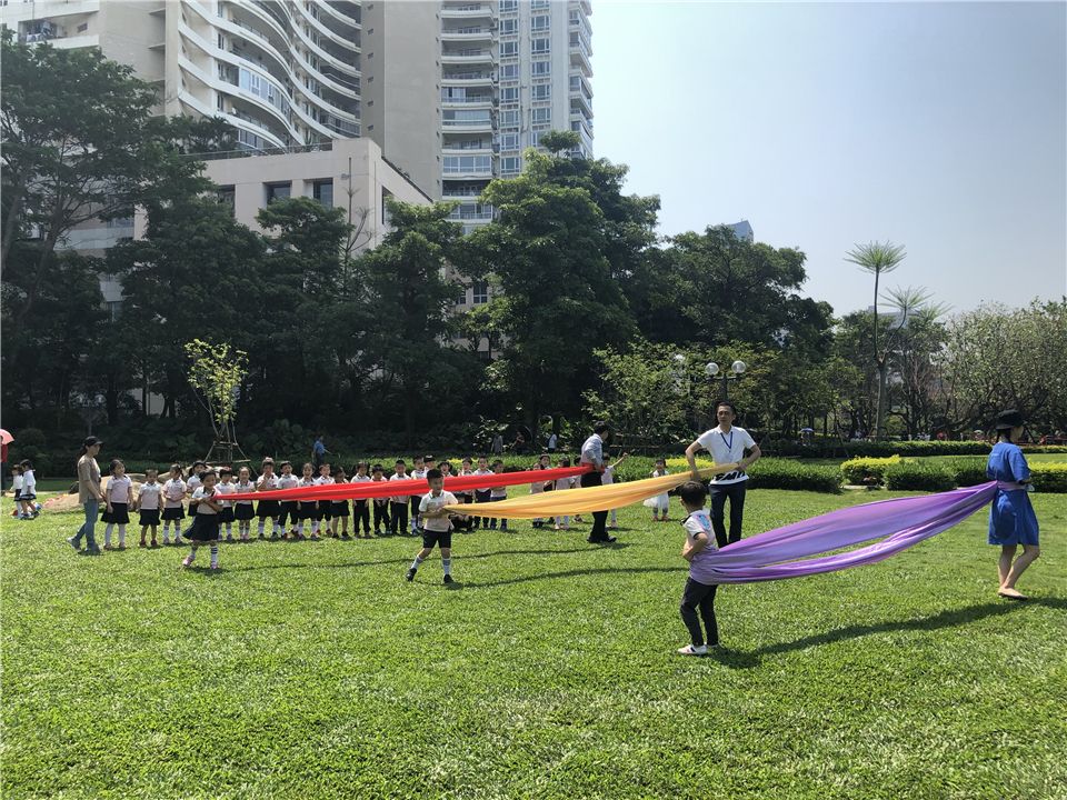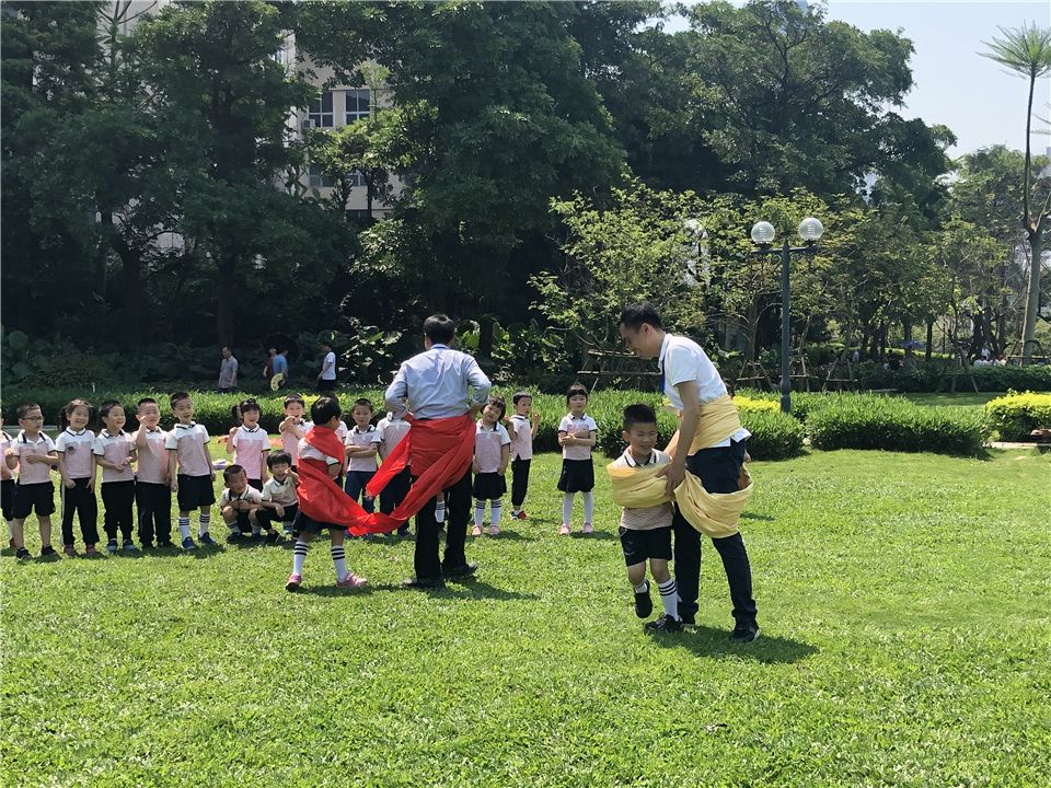 在老师的带领下,我们来到了草坪上,迎来了孩子们最梦寐以求的游戏环节,一个个目不转睛地看着老师的示范,在老师的讲解示范下,很快,孩子们亲自上场啦!瞧,在游戏中,孩子们彼此相互合作默契地配合着,我们的爸爸志愿者与老师也一起加入了这场欢快的游戏,在阳光的沐浴下,孩子们尽情的游戏,脸上尽是无限的笑容……