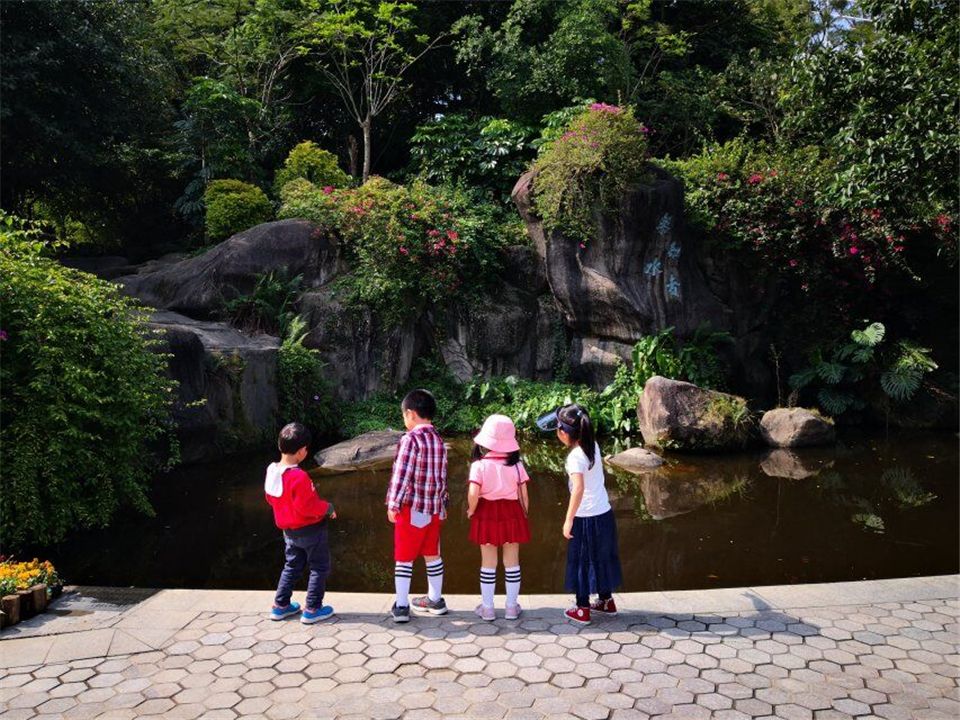 此次亲子活动的地点是厦门万石植物园,这里花草芬香,景色怡人。一进园里,映入眼帘的便是那被称作是“万石涵翠”的一汪碧泉,湖面犹如一面翠绿妆镜,湖边草木茂盛,倒映其中,影影绰绰,甚是动人。中七班的小朋友们在家长的带领下,一同在这座风景秀丽的植物园林里流连,感受生机盎然的大自然气息,窥探奇妙动人的大自然的奥秘。