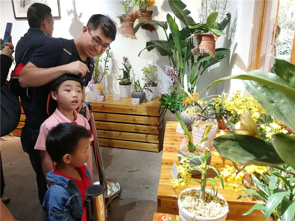 大家首先来到了百花厅。百花厅内正中是一个荷花池,池面上荷花、莲花各显姿态,五个展区沿池布置。孩子们穿游在廊桥之间,家长们漫步跟随在其后,悠然自得。在一个又一个展厅里,孩子们仔细观察着每一株树木,每一棵花草,带着对大自然的好奇之心,对新鲜知识的渴求,积极发问,家长们也充当好解惑人的角色,耐心的向孩子们讲解着每一种花、每一棵树的品名、来历,亲子之间互动热烈,亲密非凡。除此之外,孩子们在这里还纷纷找寻了自己最喜欢的大树,与它们合影,留下了美好的动人回忆。
