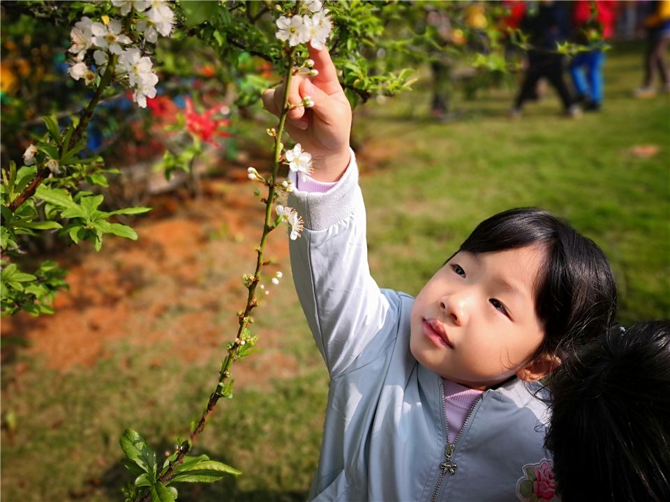 “这里有一大条白色的花,快来看啊!”远处的小多惊喜的大声呼喊着她的小伙伴们,小家伙们有的凑过去闻一闻花香,有的伸出小手摸一摸小花瓣,原来他们发现了李花,李花花挨着花,心挨着心,一簇