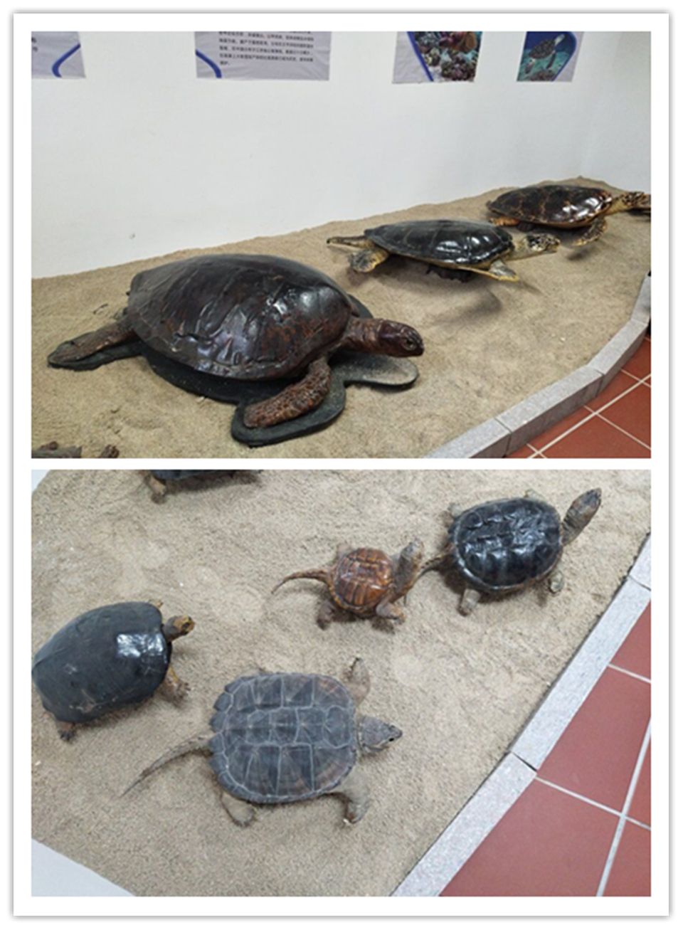 “你瞧,这海龟的脚上有蹼,陆龟脚上有爪子。”