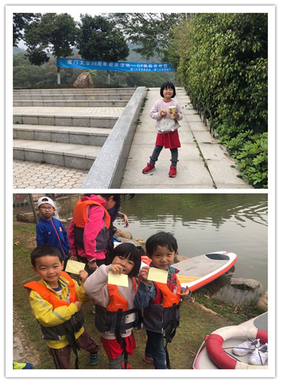 身处高校,最幸福的莫过于有这么丰厚的高校资源可以让孩们参与、体验。厦大98周年的校庆活动,我们这群小小厦大娃也不落下。猜猜看,在“厦大98周年校庆”期间我们中五班的小小厦大娃会做些什么?在爸爸妈妈的带领下我们参观、看表演、体验坐帆船……