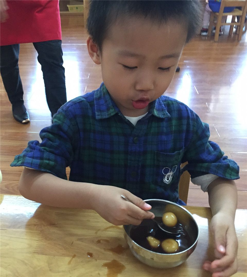 “磨一磨呀,搓一搓,揉一揉呀,做汤圆,咕噜噜,咕噜噜,我的汤圆做好啦!”没有什么比我们自己做汤圆来得更有趣!