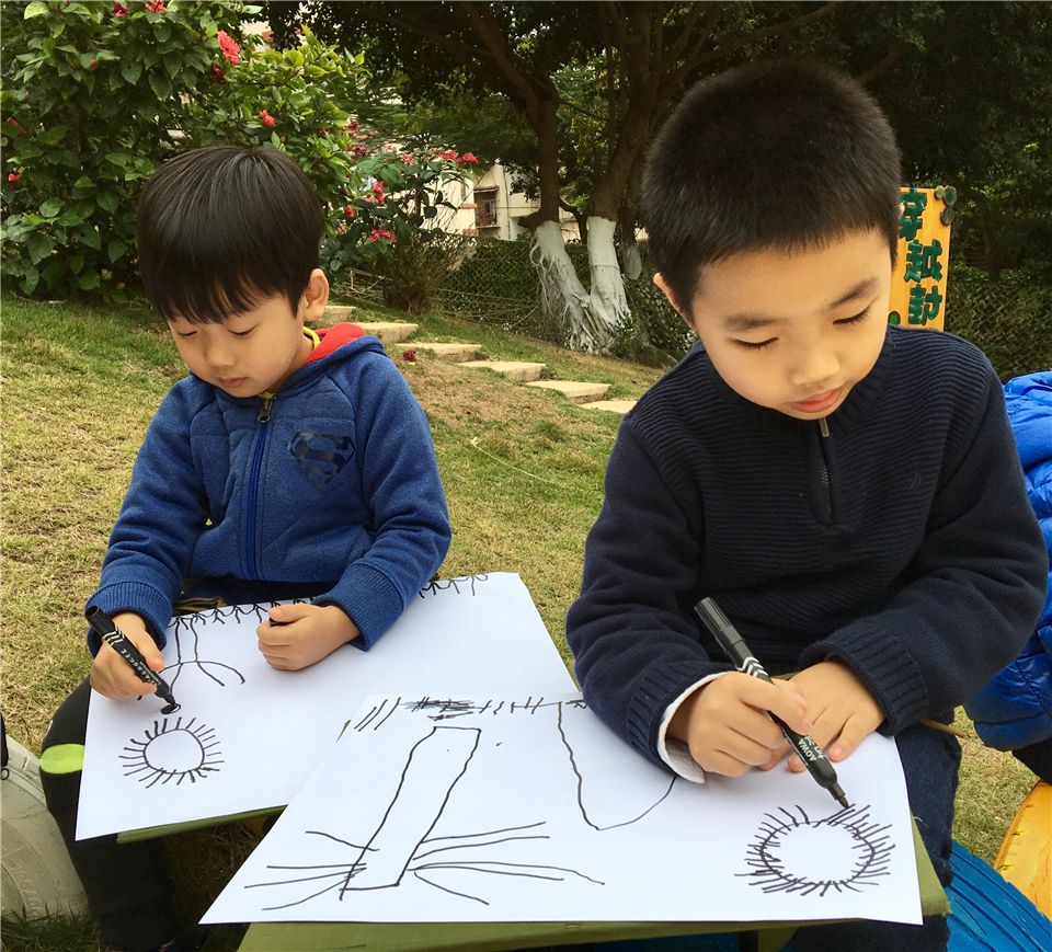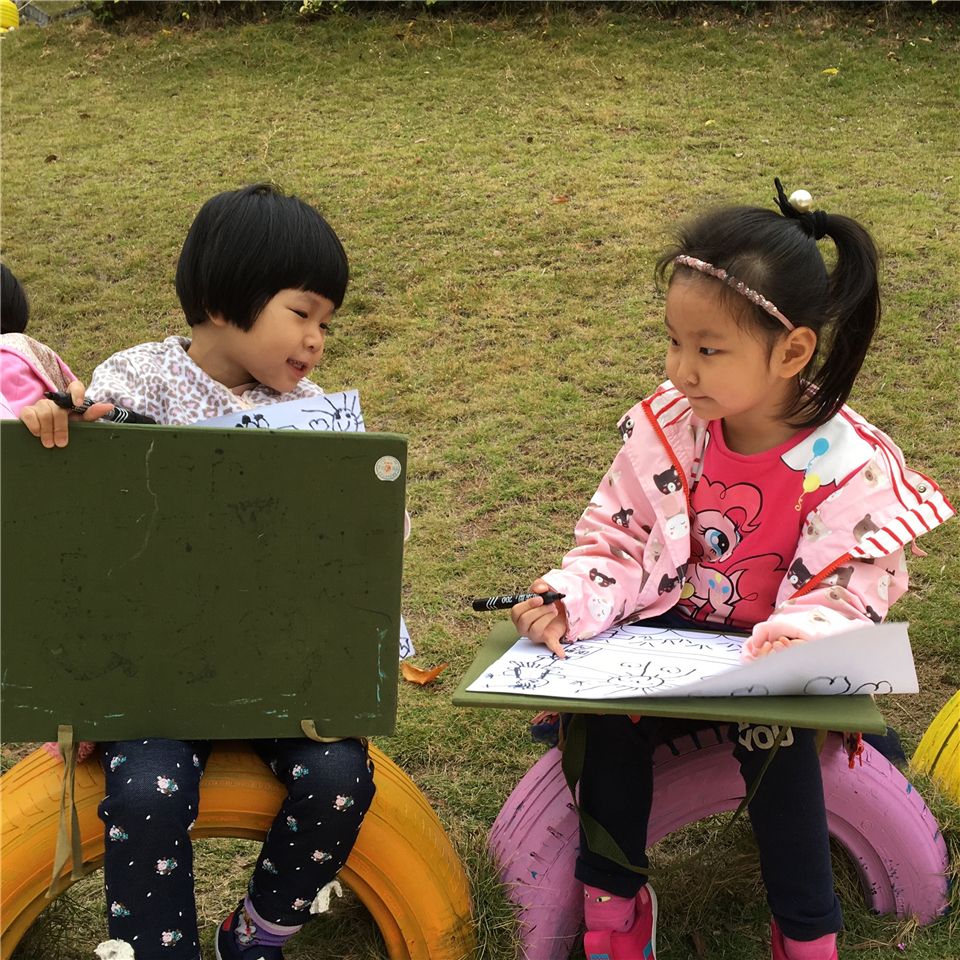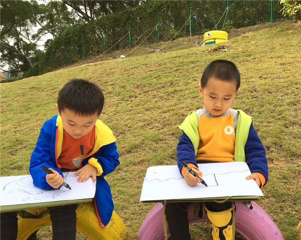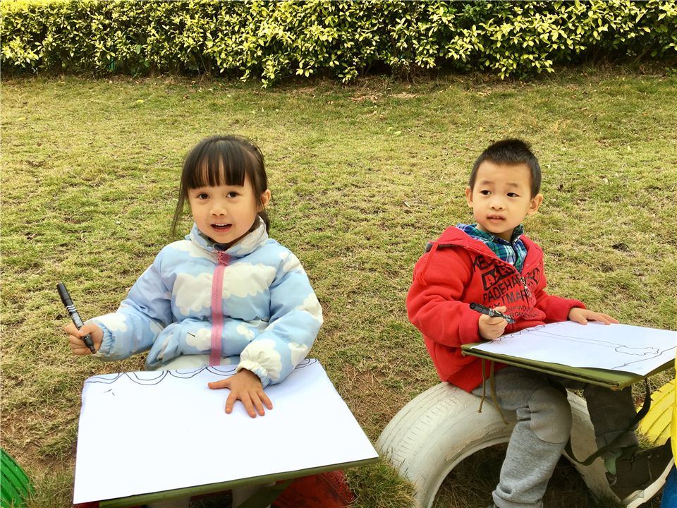 瞧,这么多小萌娃们坐在山坡是在干什么呢?唔,膝盖上都放了块画板,原来是在写生呀!是的,这是中七班萌娃们有史以来第一回写生,大家都很激动呢!