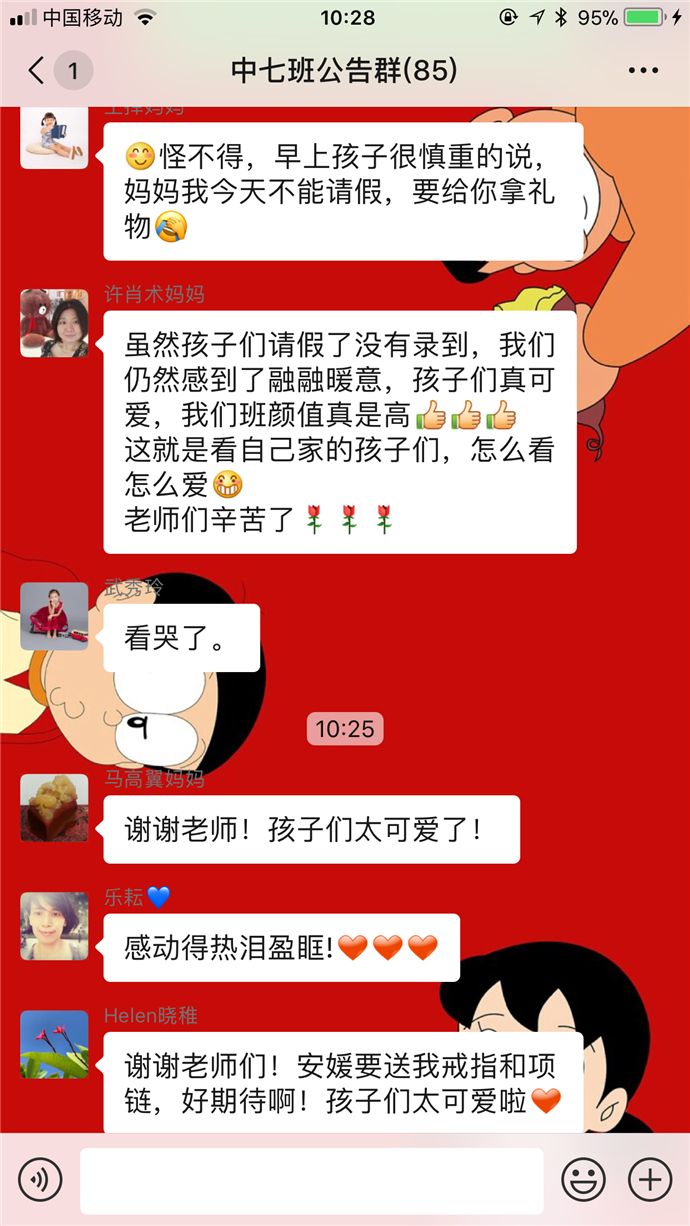 宝贝们还将心里的话和节日祝福录制成了视频,给女神妈妈们送去了惊喜!虽然有的小朋友面对镜头还有点不好意思,可是心里满满的爱都写在脸上呢!我们的女神妈妈们也纷纷表示,宝贝们都长大了,学会了感恩,真是很感动呢!