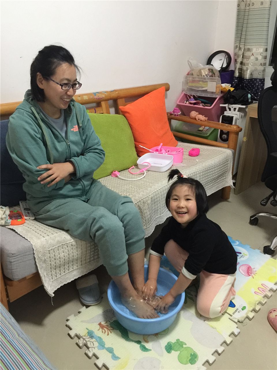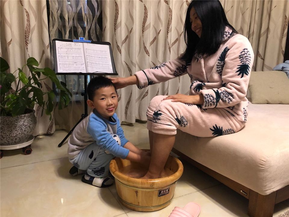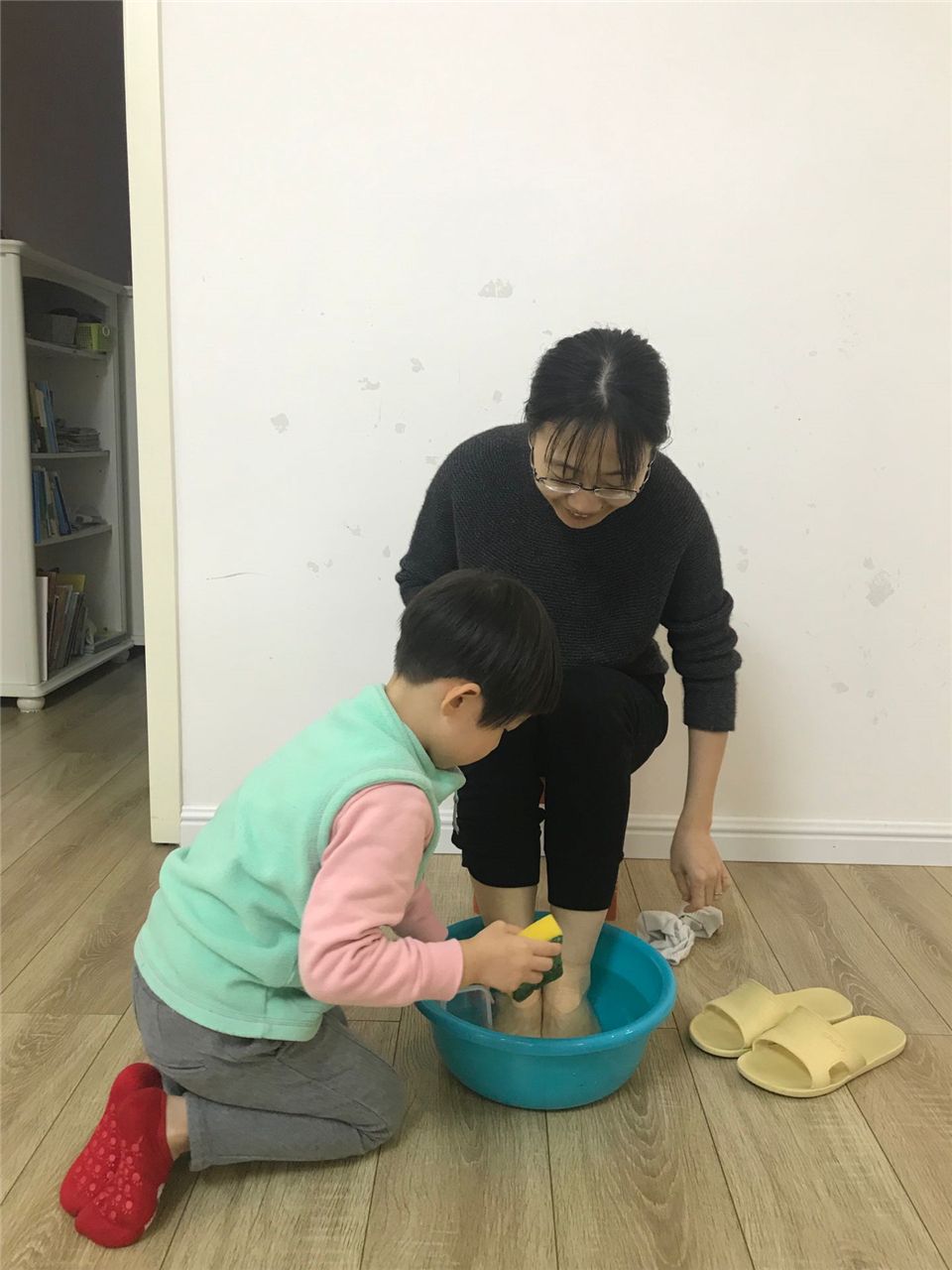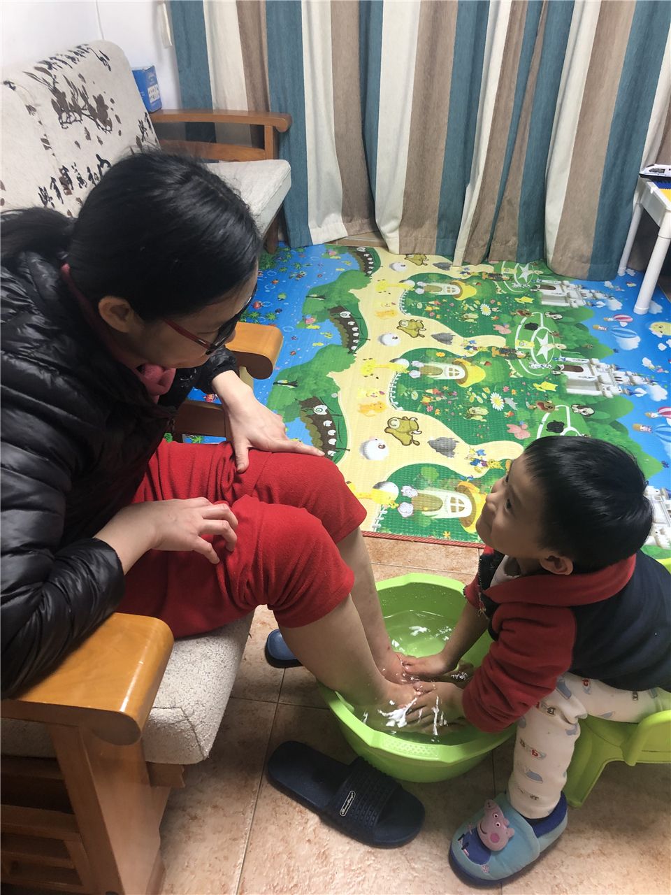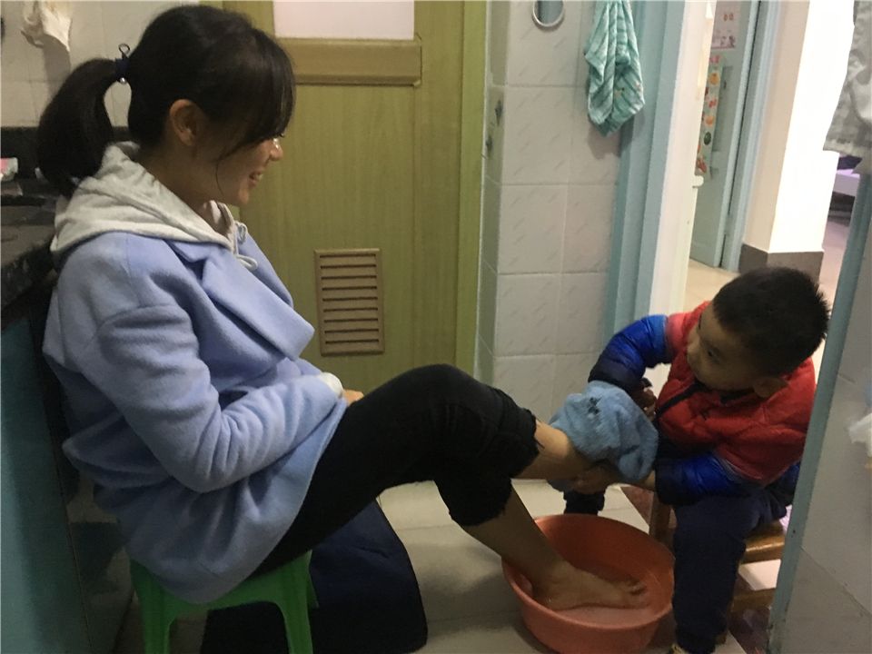除了包包礼物,每个小朋友还给妈妈准备了另一份礼物——回家帮妈妈、奶奶们洗洗脚!孩子们稚嫩、温暖的小手,满怀着爱意,在热水里轻轻地揉捏、清洗着妈妈们辛苦了一天的双脚,表达了对妈妈们最纯真、满满的爱。