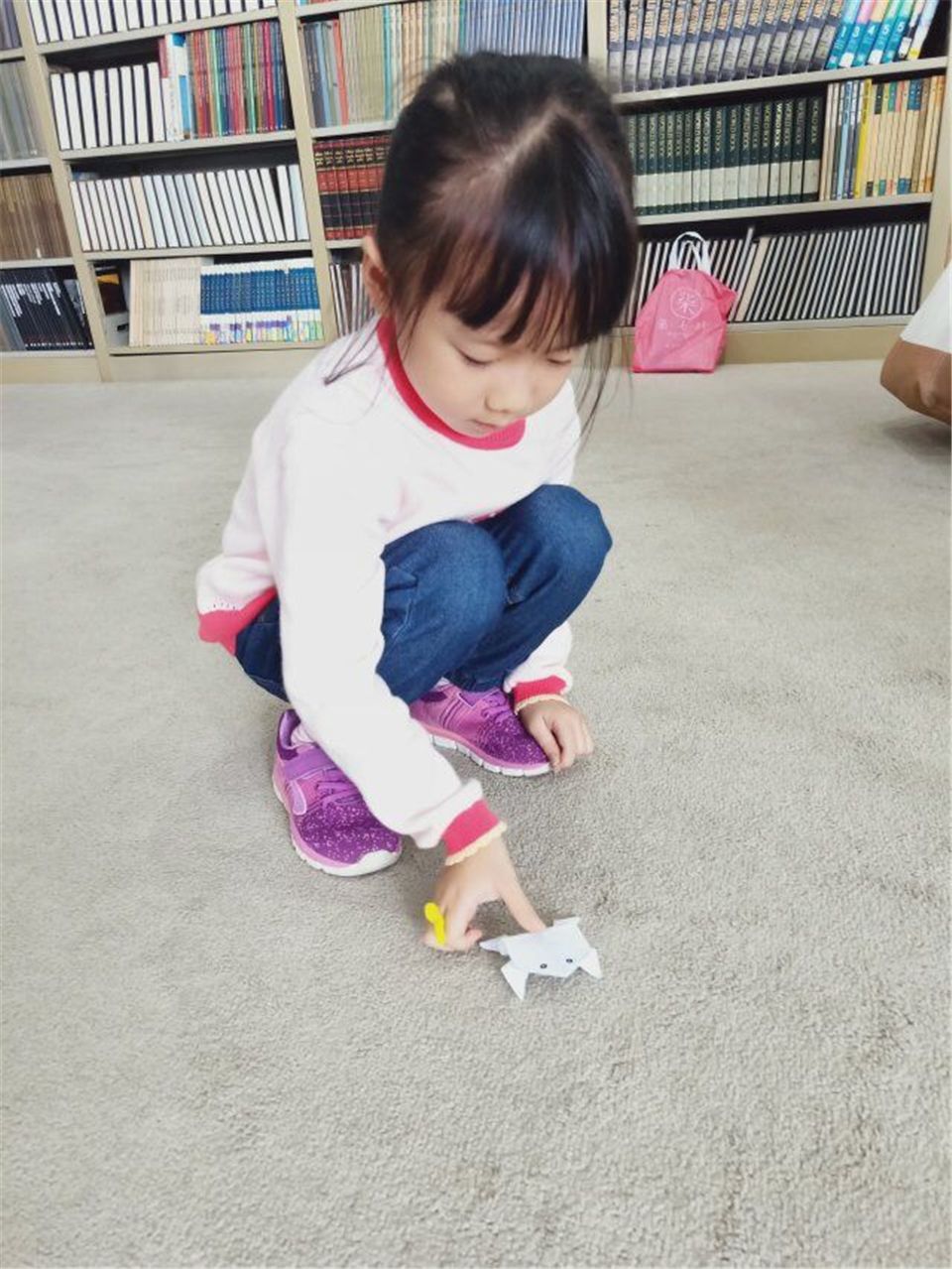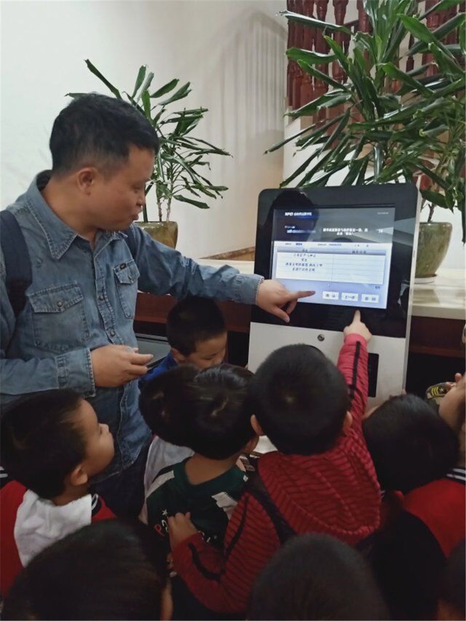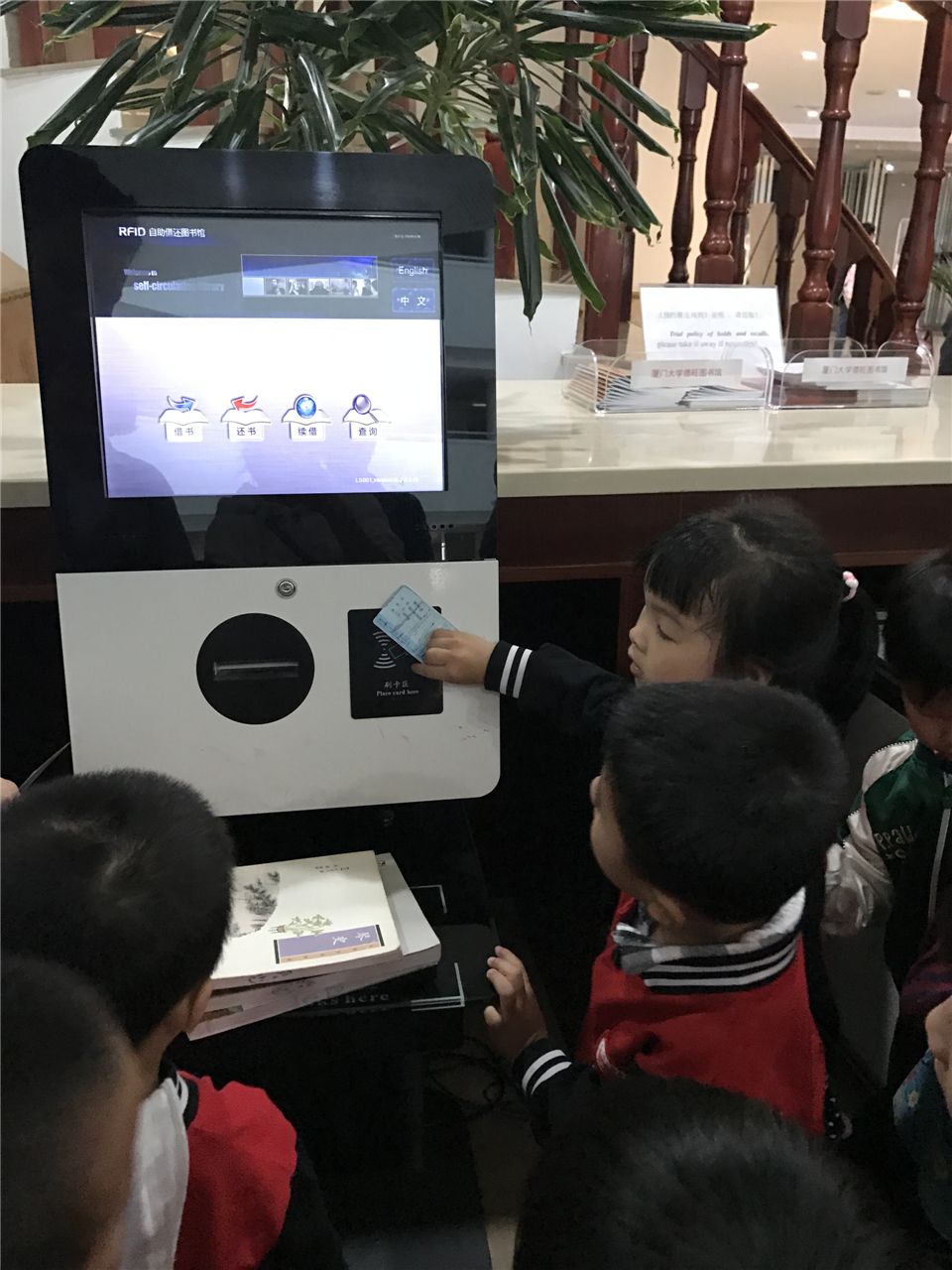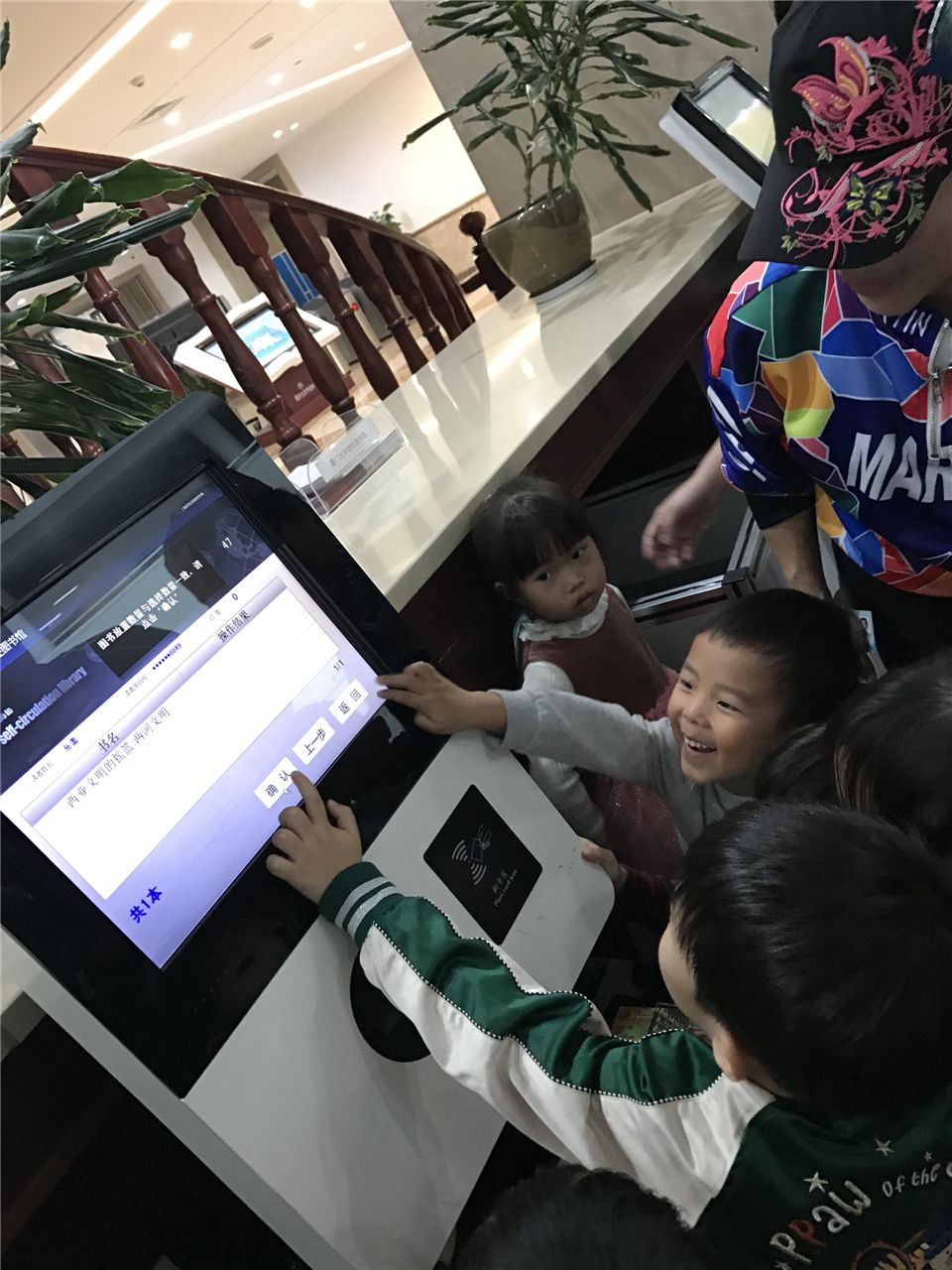 来到一楼后,皮皮蛋蛋的爸爸还向孩子们讲解、示范了借书、还书、办理图书证等方面的知识,耐心细致解答孩子们提出的有关问题。最后,还让小朋友们体验了一把。
