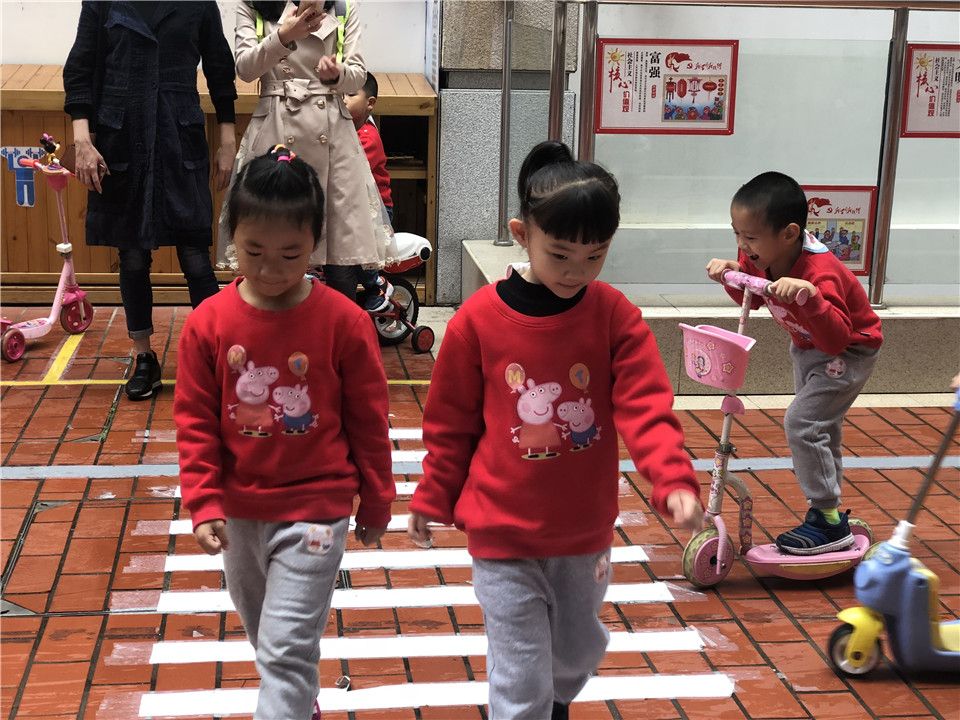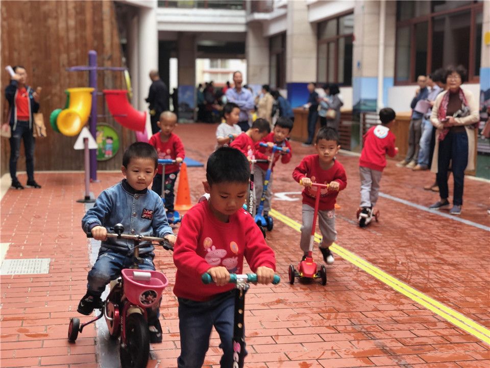 爸爸:你看孩子们的活动项目真的很丰富呢!有交通道路和交通工具,还有各种让孩子们玩的玩具,他们可真是幸福呀!